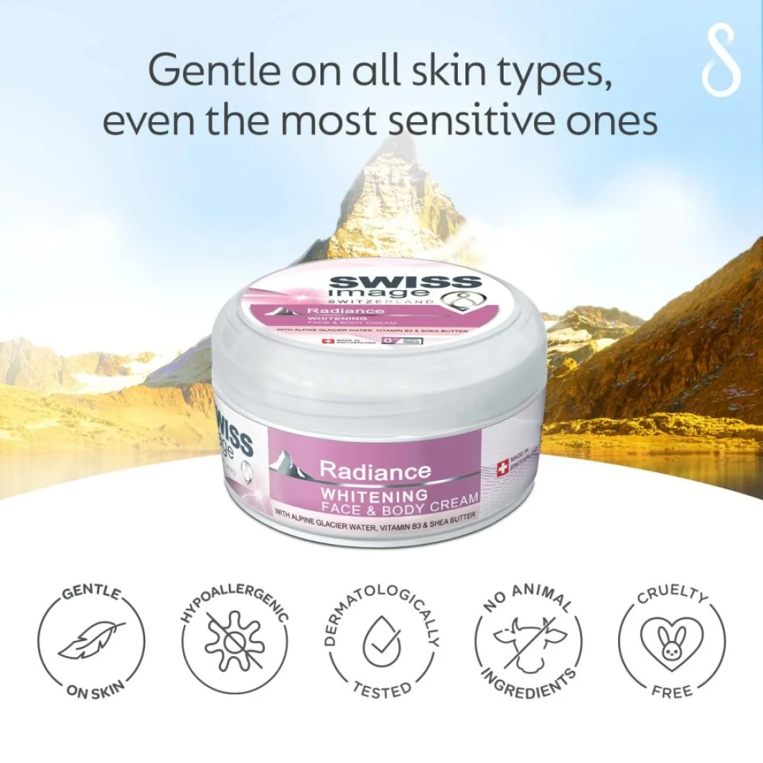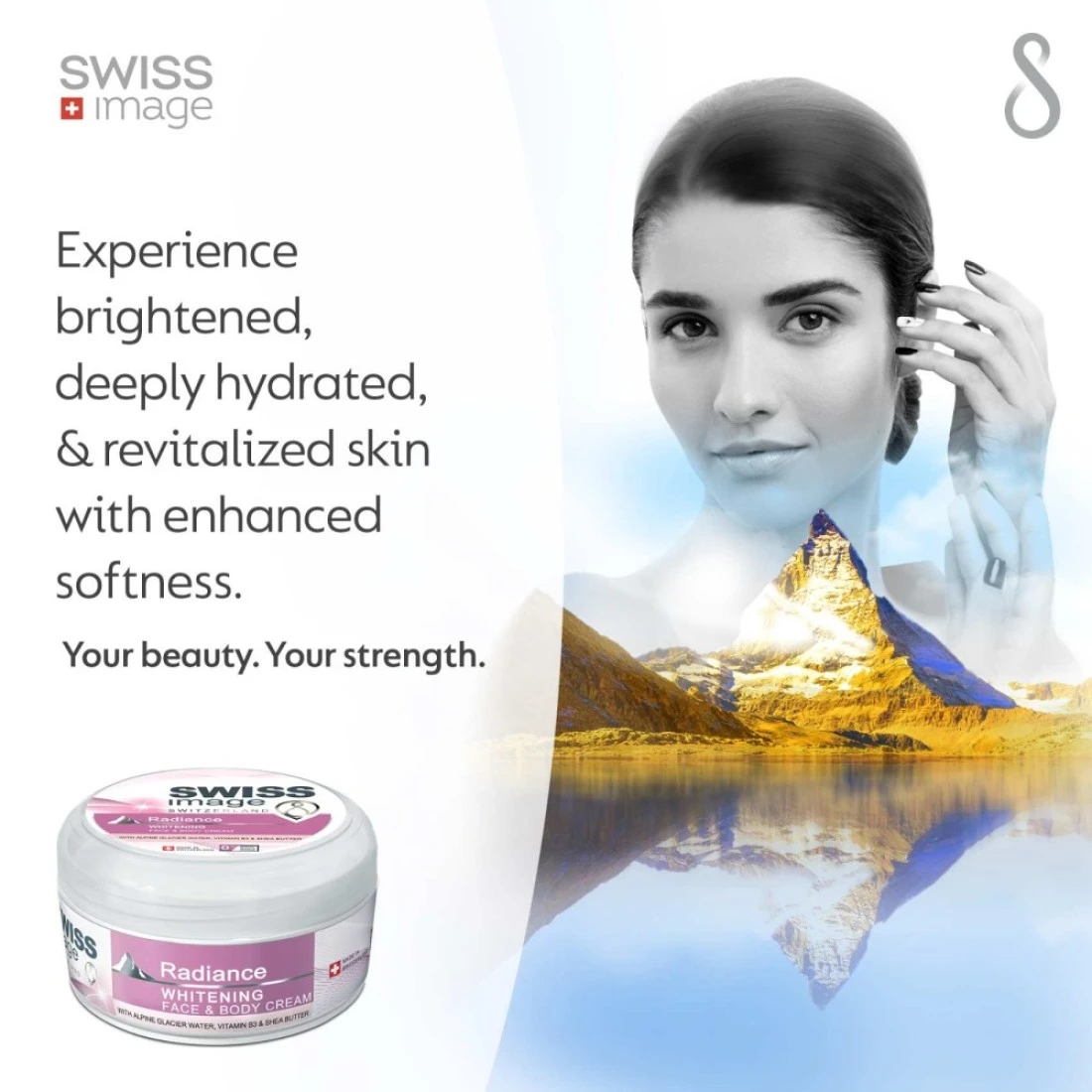 The Swiss Image Radiance Whitening Face & Body Cream is a powerful skincare product that helps to lighten and brighten the complexion. It is formulated with natural ingredients that work together to reduce the appearance of dark spots, blemishes, and uneven skin tone. This cream is suitable for both the face and body, making it a versatile option for those looking to achieve a more radiant and even skin tone. This cream is enriched with Swiss Alpine plant extracts that are known for their skin-lightening properties. These extracts help to inhibit the production of melanin, the pigment responsible for dark spots and uneven skin tone. With regular use, this cream can help to visibly lighten the complexion and leave the skin looking more radiant and youthful. Not only does this cream help to lighten the skin, but it also provides deep hydration and nourishment. It is enriched with moisturizing ingredients that help to keep the skin hydrated and plump, preventing dryness and dullness. The lightweight formula absorbs quickly into the skin, leaving it feeling soft, smooth, and supple.