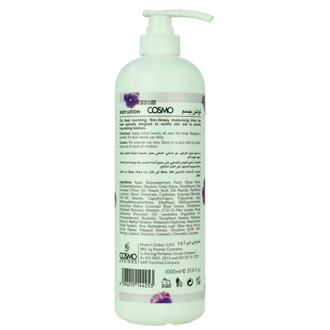 Cosmo Lavender Soothing Body Lotion is a luxurious and nourishing lotion that helps to soothe and moisturize the skin. Infused with the calming scent of lavender this body lotion provides a relaxing and spa-like experience. The lightweight formula absorbs quickly into the skin leaving it feeling soft smooth and hydrated. Perfect for daily use this 1L bottle ensures long-lasting hydration for your entire body. Pamper yourself with the soothing and aromatic benefits of Cosmo Lavender Soothing Body Lotion.