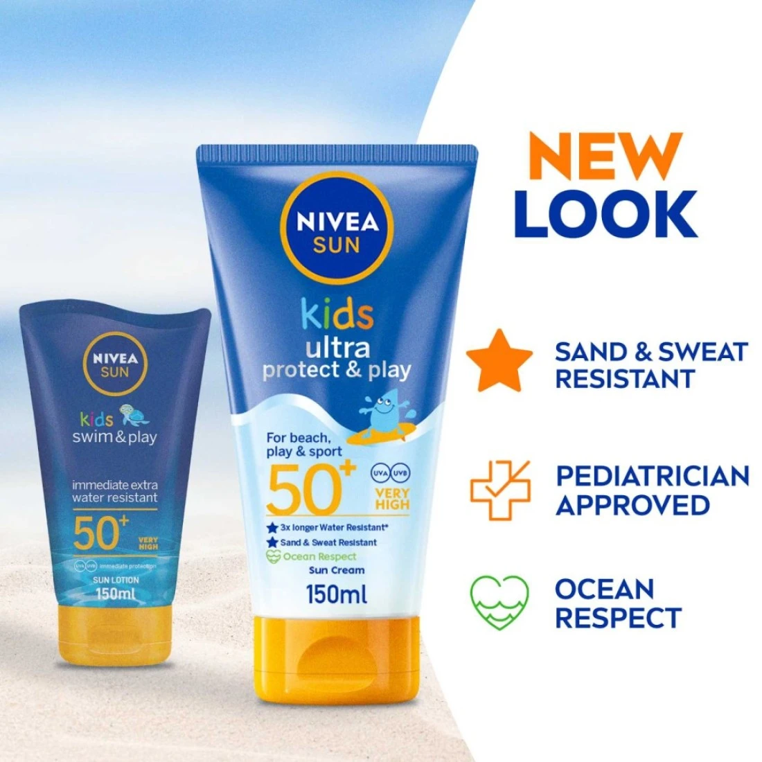 NIVEA SUN Kids Swim & Play Sun Lotion protects children against damaging UV rays to prevent sunburn and lasting damage to the skin. The formula with Dexpanthenol supports the skin's protective barrier and the long-lasting water resistance allows children to stay in the water for longer before having to reapply - ideal for little swimmers! It helps to reduce the risk of sun allergies and has been specifically formulated for children's delicate skin. No need to worry about sunscreen stains as this water-resistant sunscreen has a formula that helps them to wash out more easily compared to previous formulas. The sun is there to be enjoyed by all and with NIVEA’s line of sun care products enjoy it as you shall! We don’t just offer sunscreen either. We have lotion sprays and roll-ons that are perfect not only for staying protected from those harmful UV rays but also for keeping your skin healthily moisturized and soft no matter what season it is. Everyone’s skin is unique so we made sure we have an equally unique lineup of sun care products that are guaranteed to match your specific needs. NIVEA a hundred years of skincare for life!