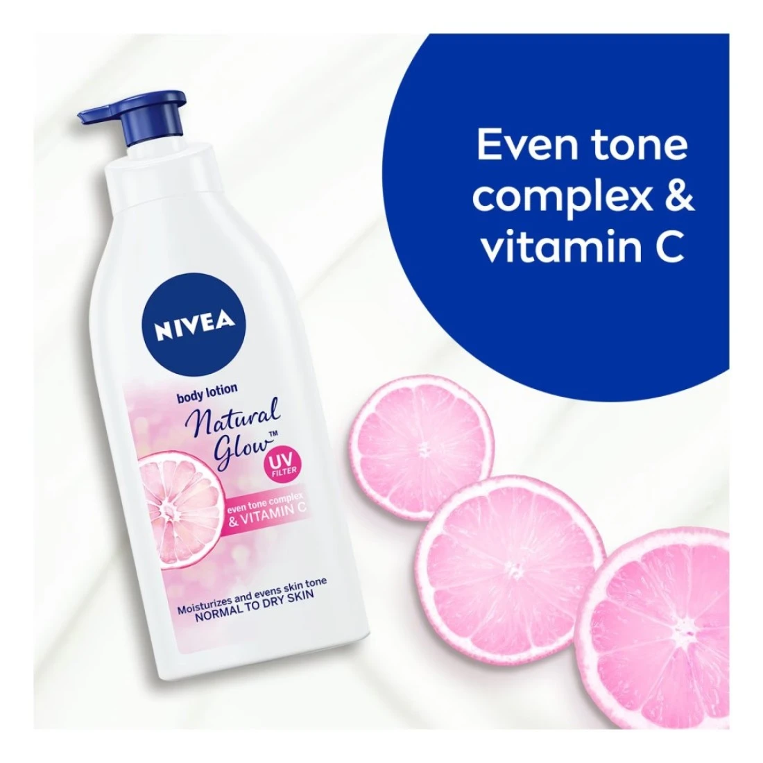 NIVEA Natural Glow Body Lotion is an ultralight, 4-in-1 effects formula that enhances your skin’s natural radiance and protects it from the darkening sun rays with advanced UVA/UVB filters.Enriched with even tone complex and Vitamin C, NIVEA Natural Glow Body Lotion is fast-absorbing and strengthens the skin’s layer to help brighten discolorations and dark pigmentation spots, leaving your skin visibly fairer, even-toned and radiant.NIVEA Natural Glow Body Lotion is a gentle lightening formula that provides intense moisturization, leaving your skin smooth and well protected all day long.At NIVEA we’ve got a vast selection of soaps, shower gels, bath additives, deodorants, creams, lotions, milks and a lot more. If you’re looking for products to help improve the healthy look or glow of your skin, we’ve got you covered! Take a look now and discover the ideal NIVEA product for your needs and preferences. We have products for both men and women including shaving items and deodorants for all of your personal hygiene requirements. NIVEA, a hundred years of skincare for life!