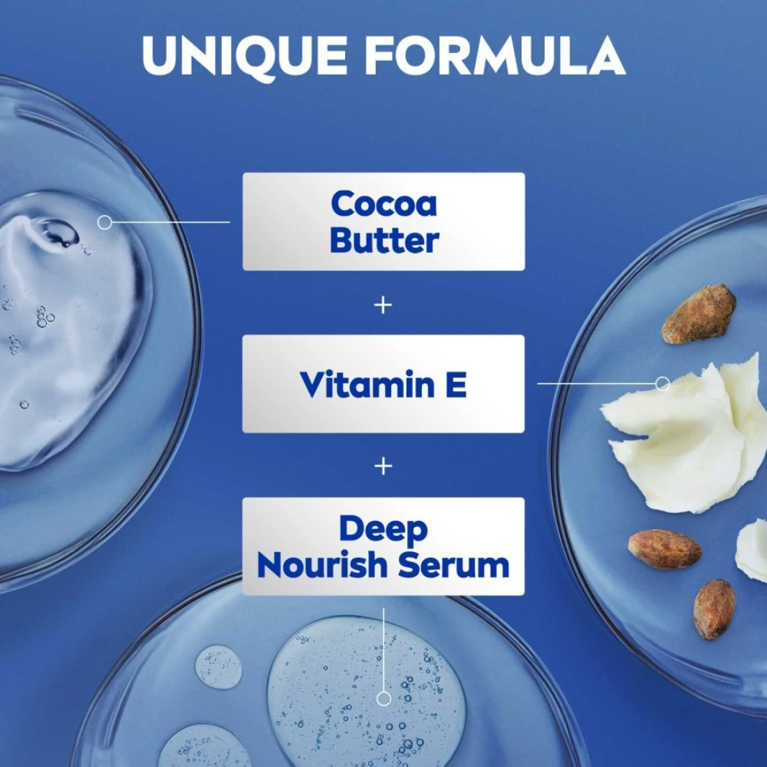 NIVEA Cocoa Butter Body Lotion is a creamy textured formula that instantly gives your skin sensational softness while enveloping your senses with an indulgent fragrance.Formulated with deep moisture serum, NIVEA Cocoa Butter Body Lotion is enriched nourishing cocoa butter & vitamin E that helps to lock in deep moisture for 48hours and give you noticeably smoother skin.NIVEA Cocoa Butter Body Lotion keeps away dullness to reveal glowing and beautiful skin all day long.At NIVEA we’ve got a vast selection of soaps, shower gels, bath additives, deodorants, creams, lotions, milks and a lot more. If you’re looking for products to help improve the healthy look or glow of your skin, we’ve got you covered! Take a look now and discover the ideal NIVEA product for your needs and preferences. We have products for both men and women including shaving items and deodorants for all of your personal hygiene requirements. NIVEA, a hundred years of skincare for life!