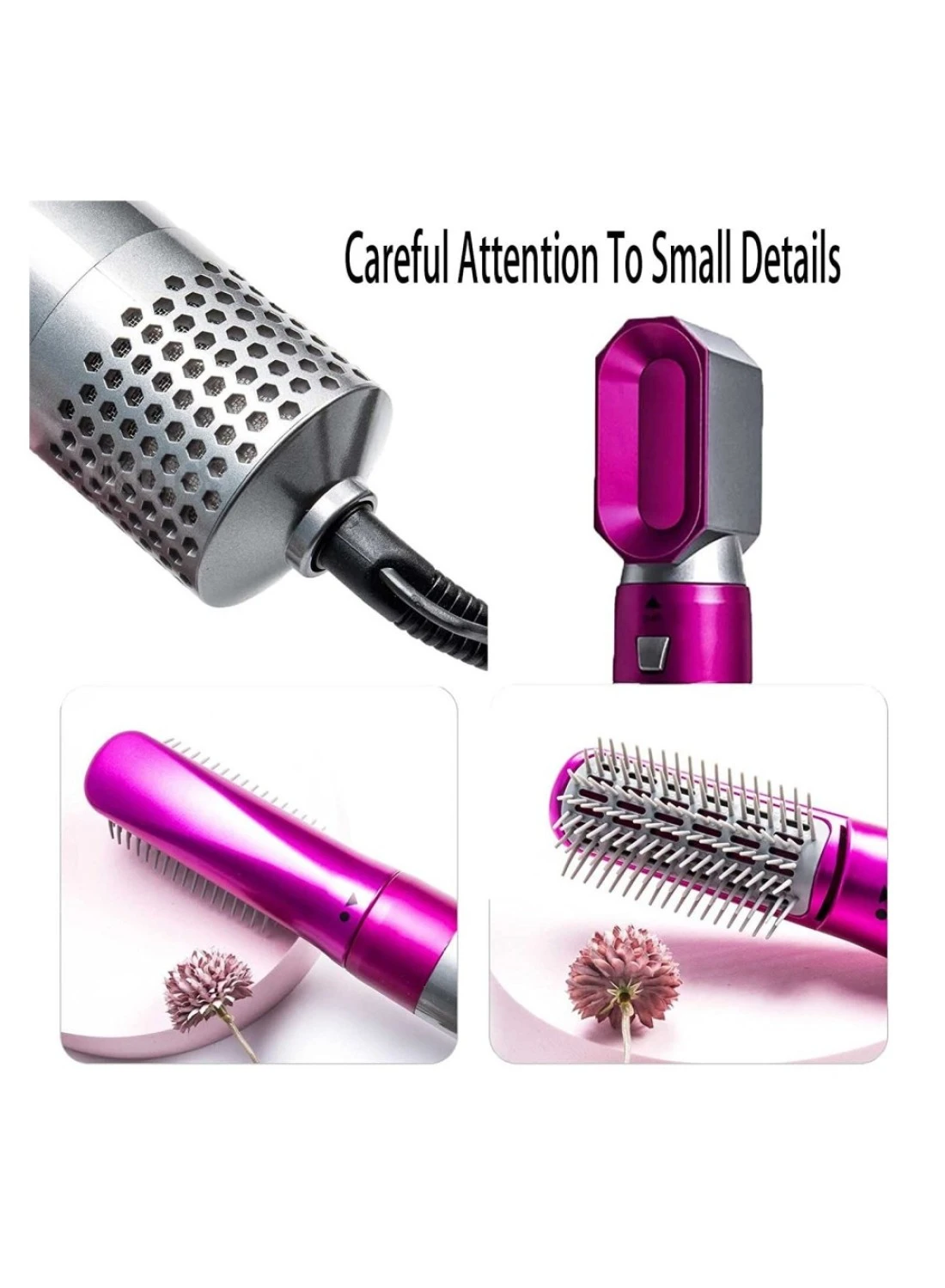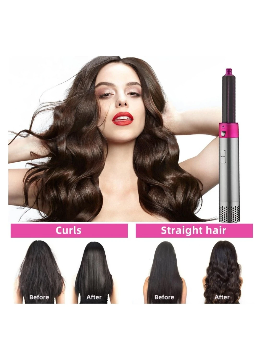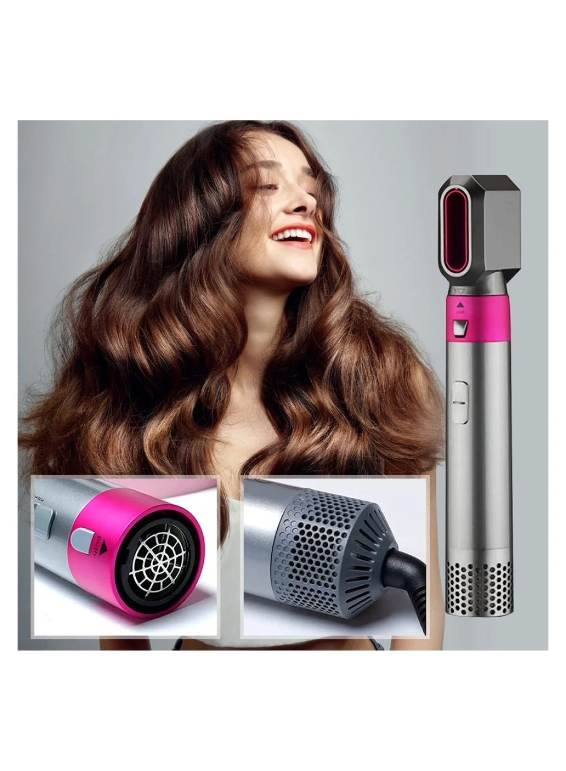 Transform your hairstyling routine with one tool that offers five interchangeable heads, including a hair dryer, automatic suction curler, rollers, comb brush, and hot air wrap.