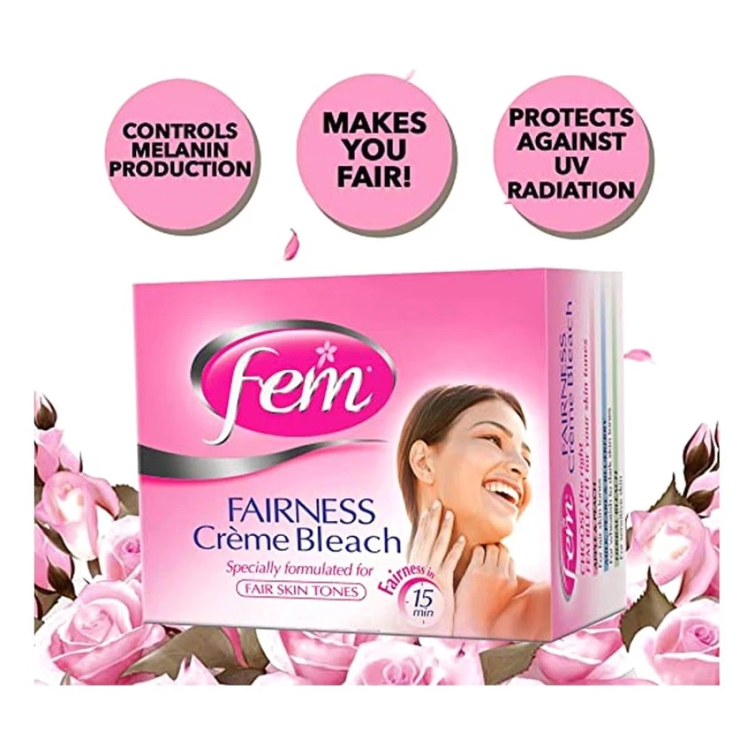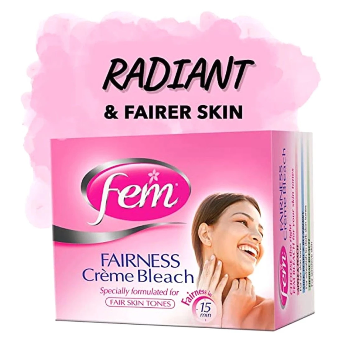 - Fem bleaches enriched with the goodness of natural ingredients are suited for your skin type and give you long-lasting fairness in just 15 minutes