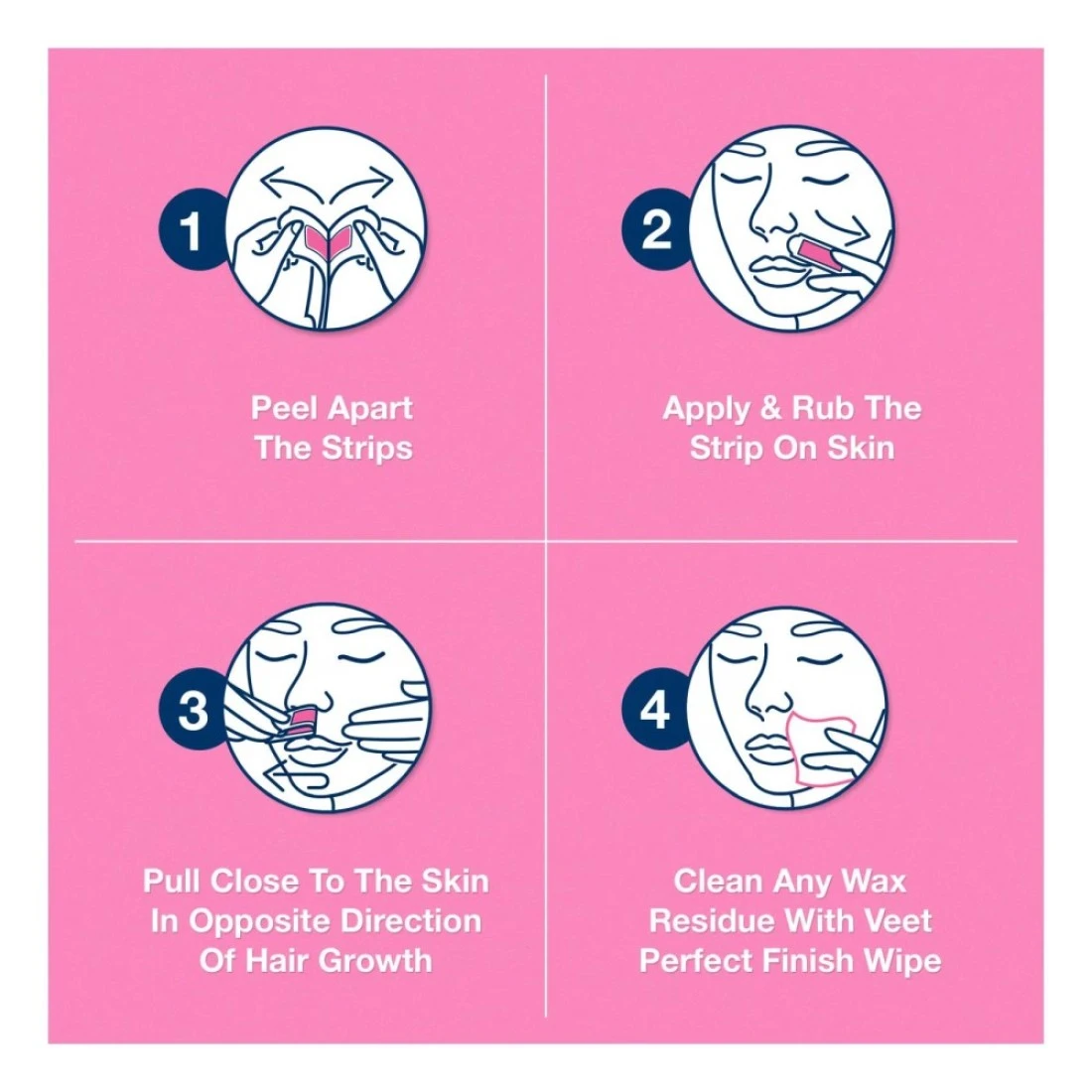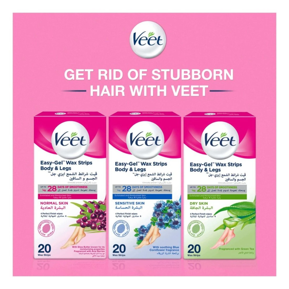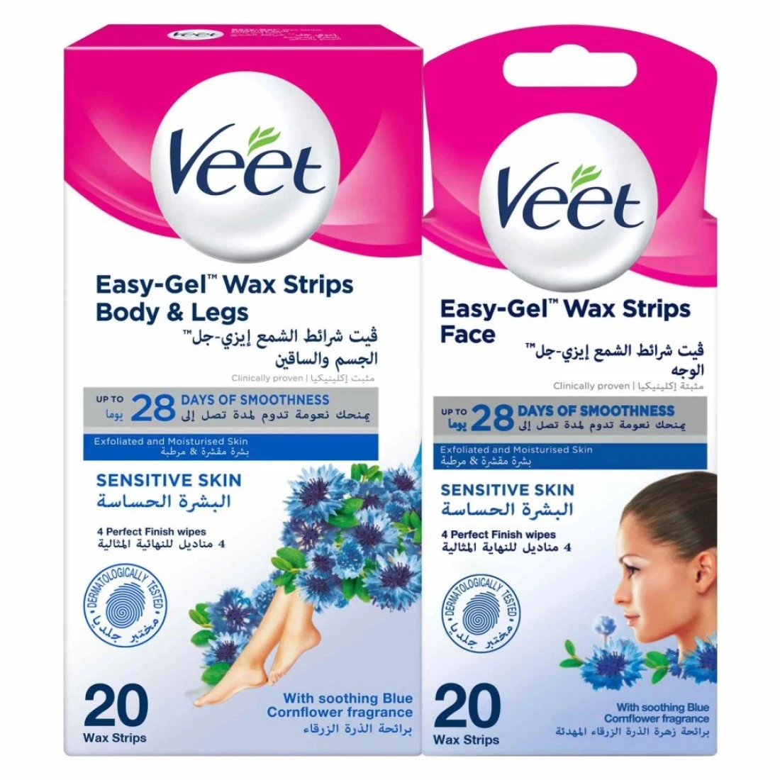 Veet Easy Gel Body And Legs Wax Strips Pack of 20 With Face Wax Strips White Pack of 20
