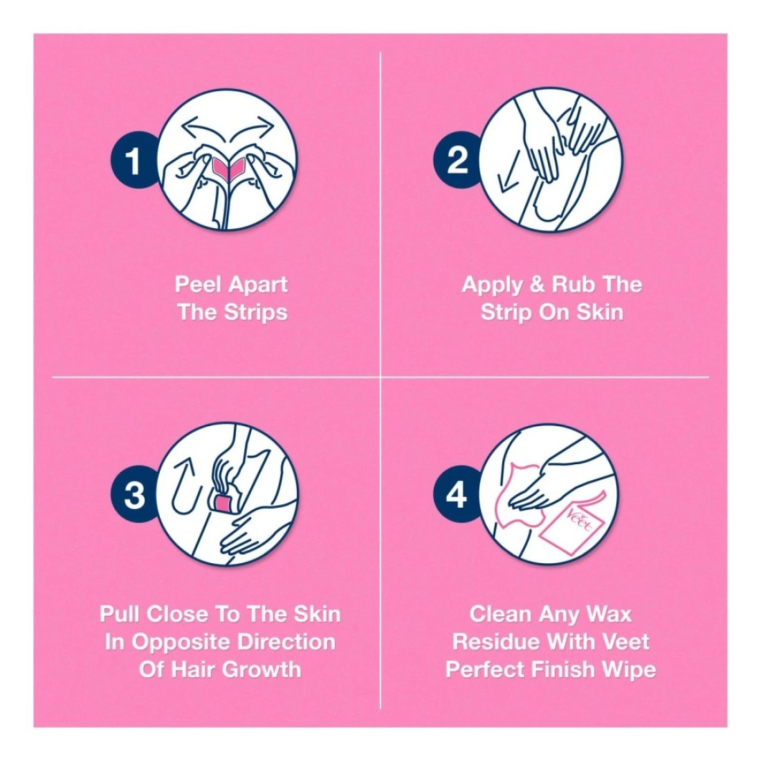 - PACK CONTENT: The pack contains 40 wax strips & 8 perfect finish wipes
