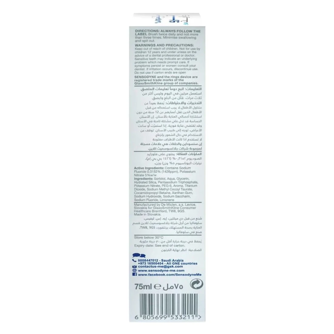 Sensodyne Rapid Action Whitening is a toothpaste specially formulated to provide fast relief for sensitive teeth while also whitening your teeth. It contains active ingredients that help to block the pain signals from reaching the nerves of your teeth, providing quick relief from sensitivity. At the same time, it gently removes stains and restores the natural whiteness of your teeth, giving you a brighter smile. This toothpaste is perfect for those who suffer from tooth sensitivity and want to achieve a whiter smile. It is clinically proven to provide fast relief from sensitivity, with results noticeable within a week of use. The unique formula of Sensodyne Rapid Action Whitening is gentle on the teeth and gums, making it suitable for everyday use. With regular use, you can enjoy a pain-free and brighter smile. With Sensodyne Rapid Action Whitening, you no longer have to compromise between sensitivity relief and teeth whitening. This toothpaste offers both benefits in one product, making it convenient and effective. Say goodbye to tooth sensitivity and hello to a whiter smile with Sensodyne Rapid Action Whitening.