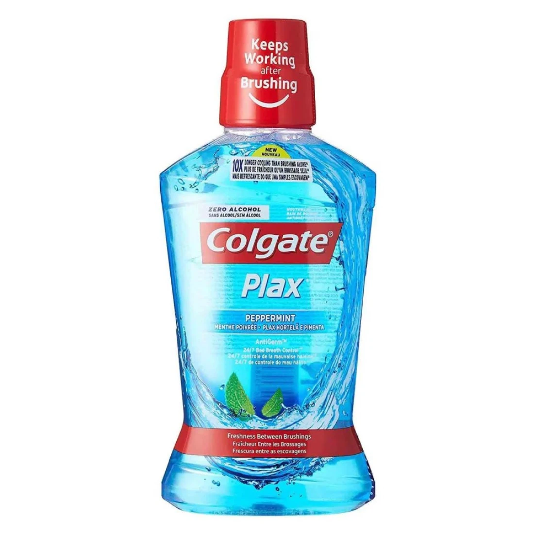 Colgate Plax Peppermint Mouthwash Blue is a refreshing mouthwash that helps to kill germs and bacteria in your mouth. It has a pleasant peppermint flavour that leaves your breath feeling fresh and clean. This pack includes two 500ml bottles providing you with a long-lasting supply of mouthwash. Use it daily after brushing your teeth to maintain good oral hygiene and keep your mouth feeling healthy.