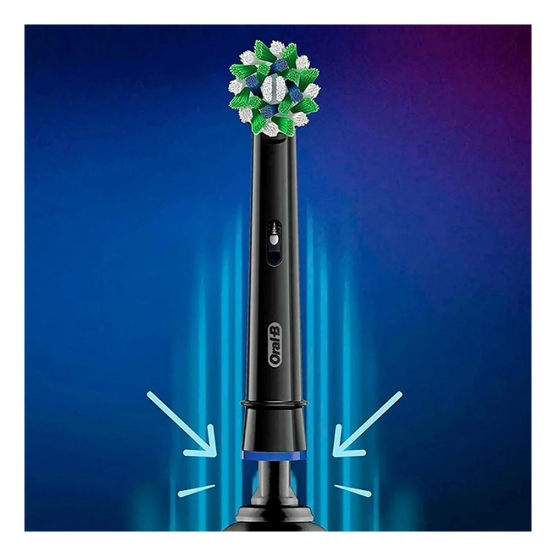 - Oral-B's exclusive round brush head cleans tooth-by-tooth for cleaner teeth and healthier gums