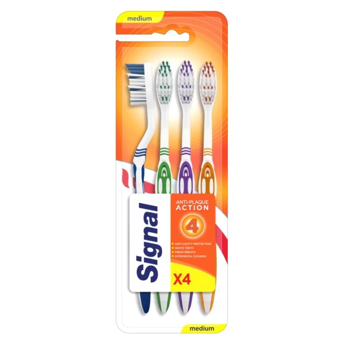 Signal Anti-Plaque Action Toothbrush Medium Multicolour 4 PCS