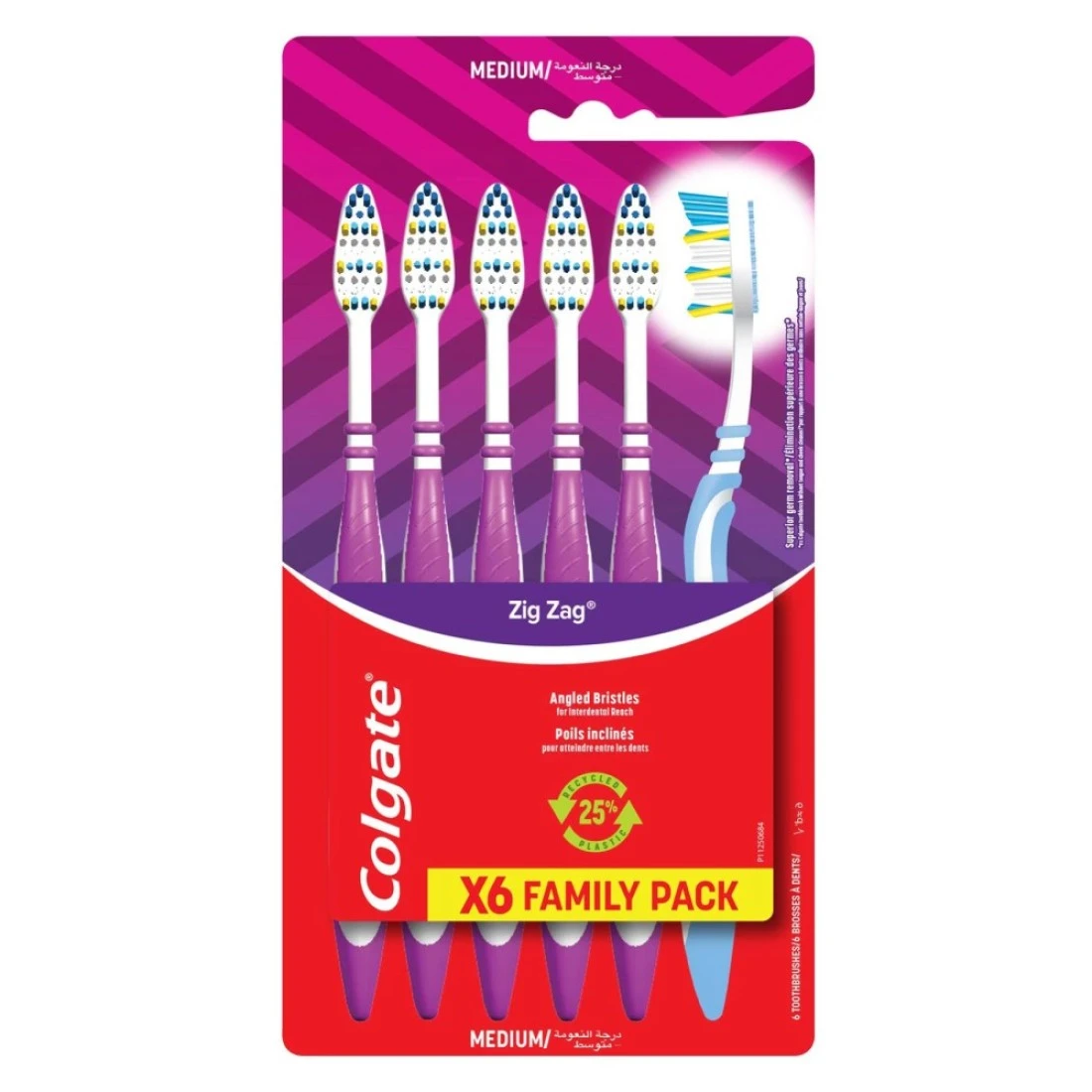 The Colgate Zig Zag Medium Toothbrush Multicolour 6 PCS is a set of six toothbrushes designed to provide a thorough and effective cleaning experience. The medium bristles are gentle on the gums while effectively removing plaque and food particles from the teeth. The zig-zag bristle pattern helps to reach difficult areas and clean between teeth for a complete clean. The multicolour design adds a fun and vibrant touch to your oral care routine. With this set, you can ensure that your whole family has access to high-quality toothbrushes for a healthy and clean smile.