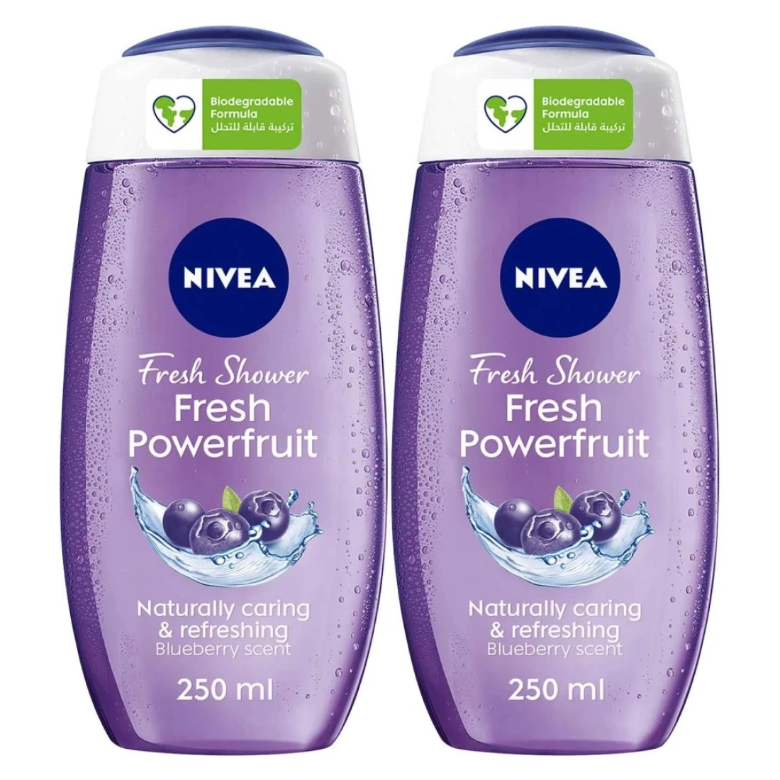 NIVEA Shower Gel Body Wash Fresh Powerfruit Antioxidants Blueberry Scent 250ml Pack of 2