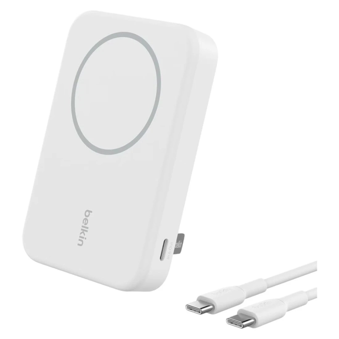 Belkin BoostCharge Pro MagSafe Wireless Power Bank With Qi2 White 8000mAh 15W With USB-C To USB-C Charging Cable White 1m