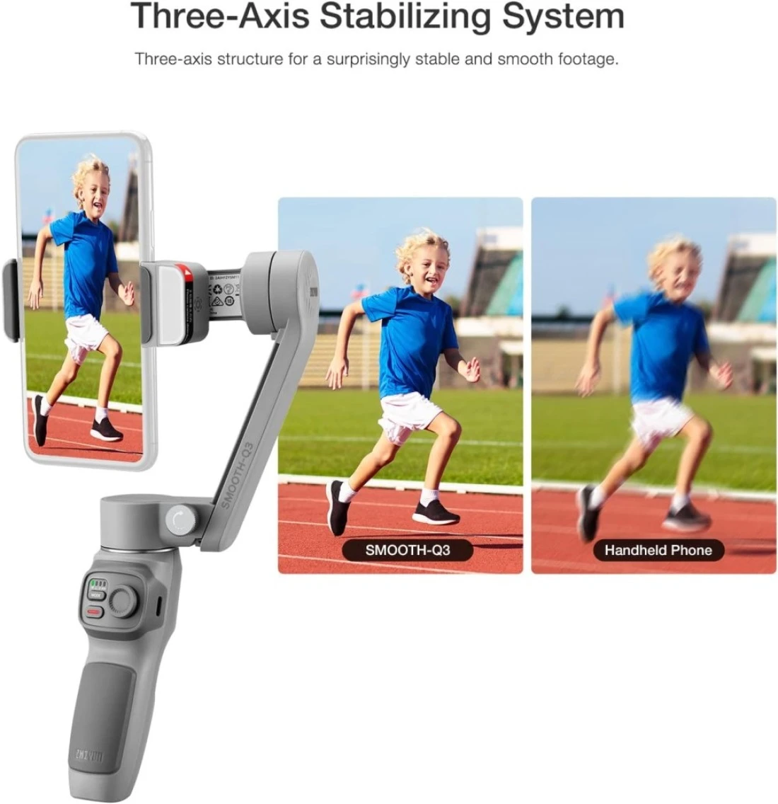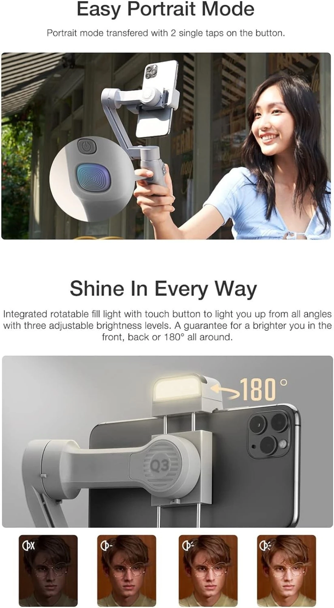 (Upgraded Smartphone Gimbal Stabilizer)3-axis structure for a surprisingly stable and smooth footage, Whole-new clearer button layout that better suits when using single-handed, Classic sliding design for you to shoot and pack anytime as you go.