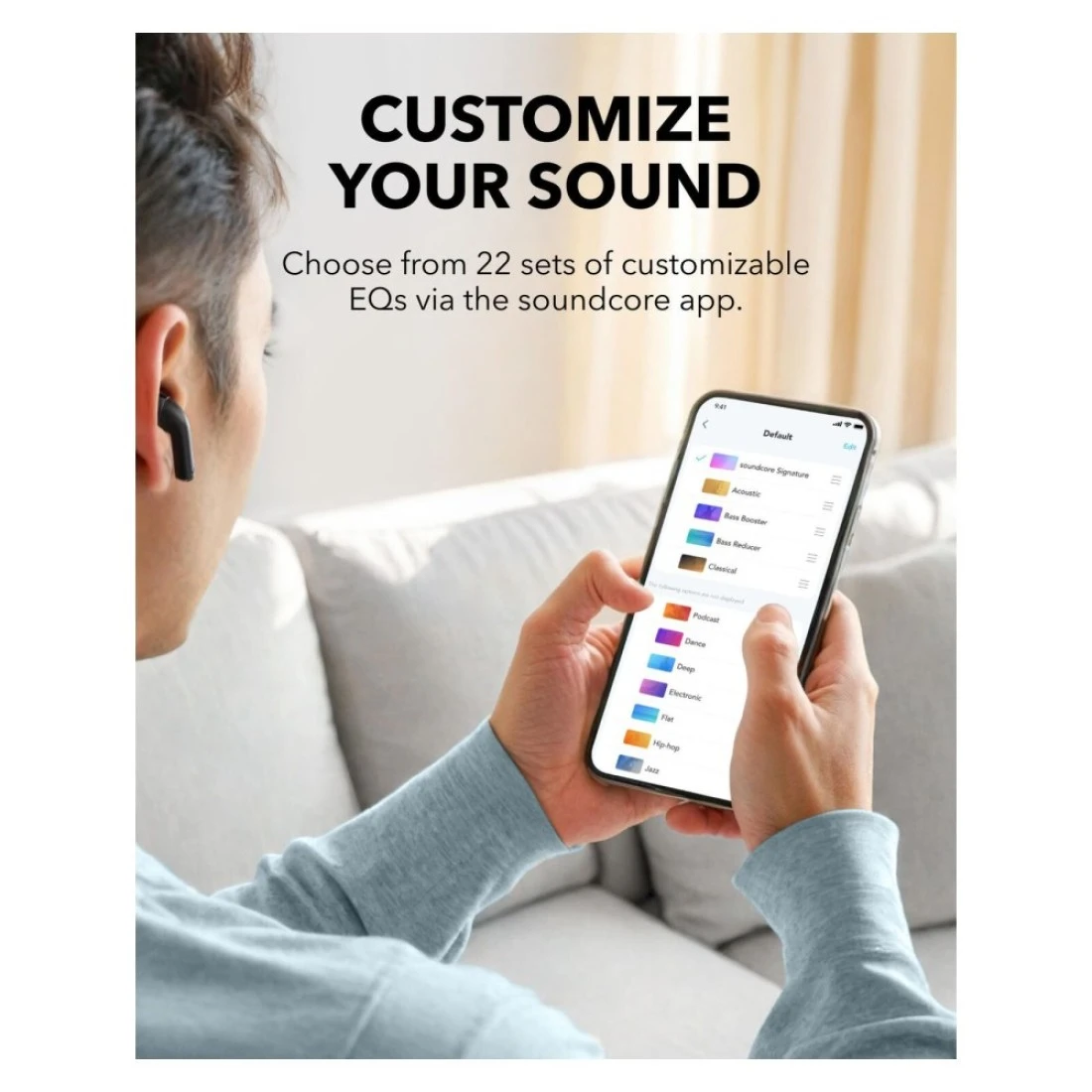 - With 22 preset EQ settings and customizable EQ options via the app, these semi-in-ear wireless earbuds let you sculpt your sound to fit your personal taste