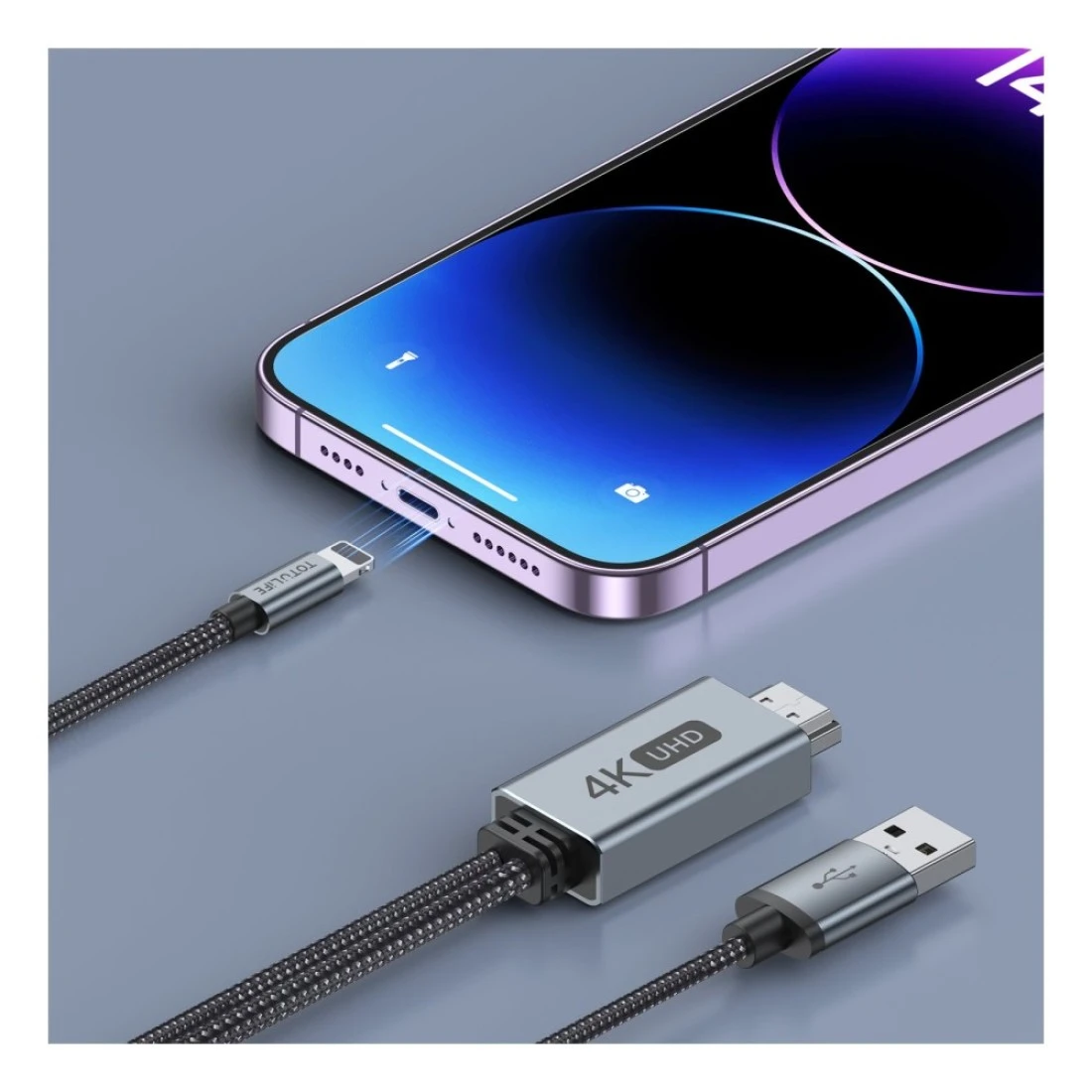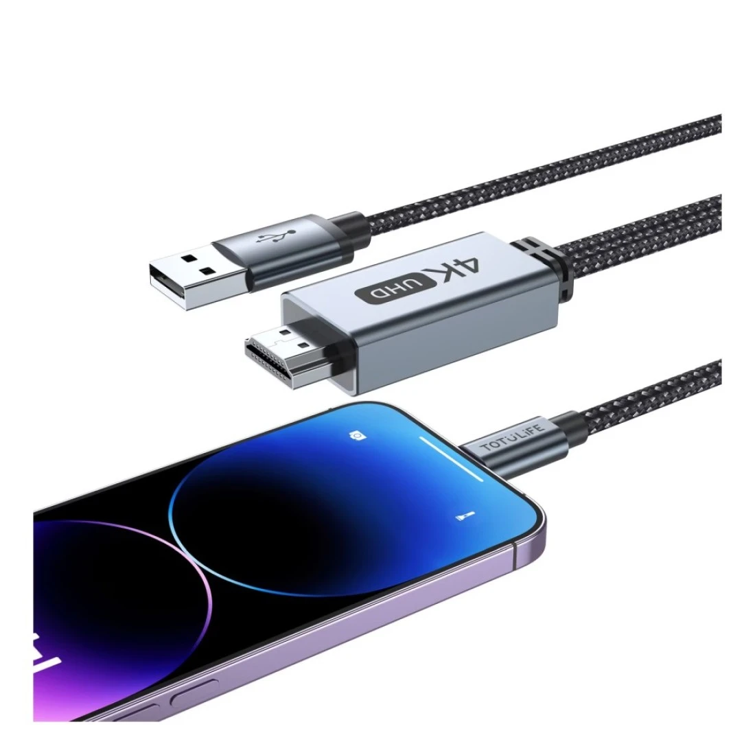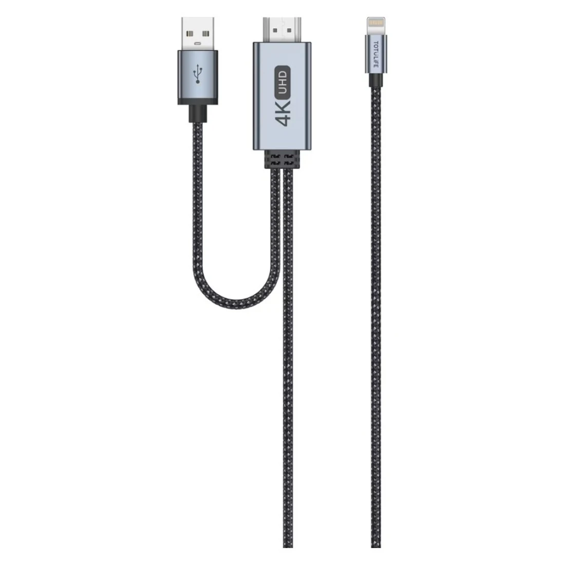TotuLife Nylo Series Lightning to HDMI Cable Black and Grey 2m