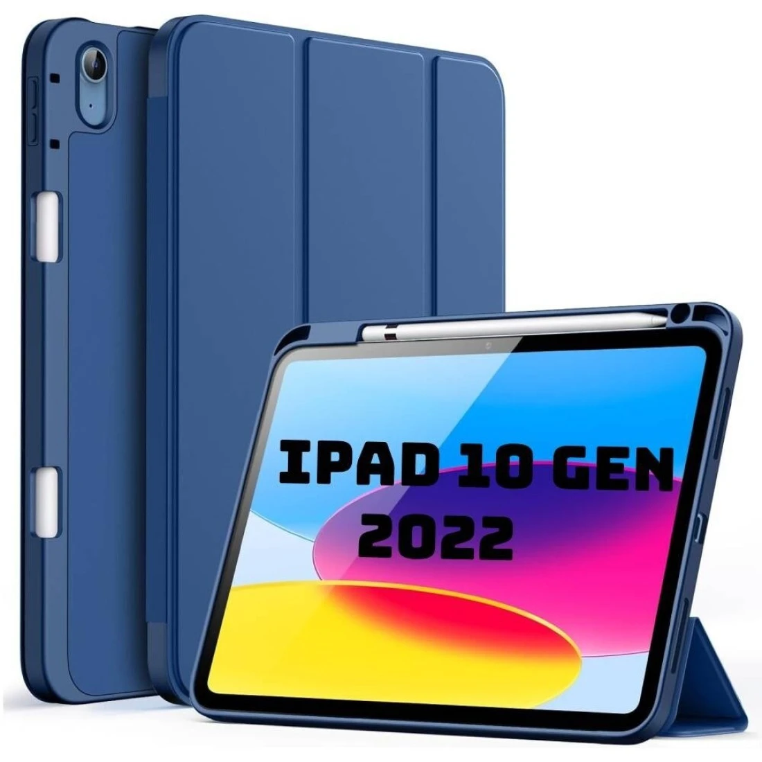 HYX Case For iPad 10 (10.9-Inch, 2022 Model, 10th Generation) with Pencil Holder, Slim Tablet Cover with Soft TPU Back, Auto Wake/Sleep Blue