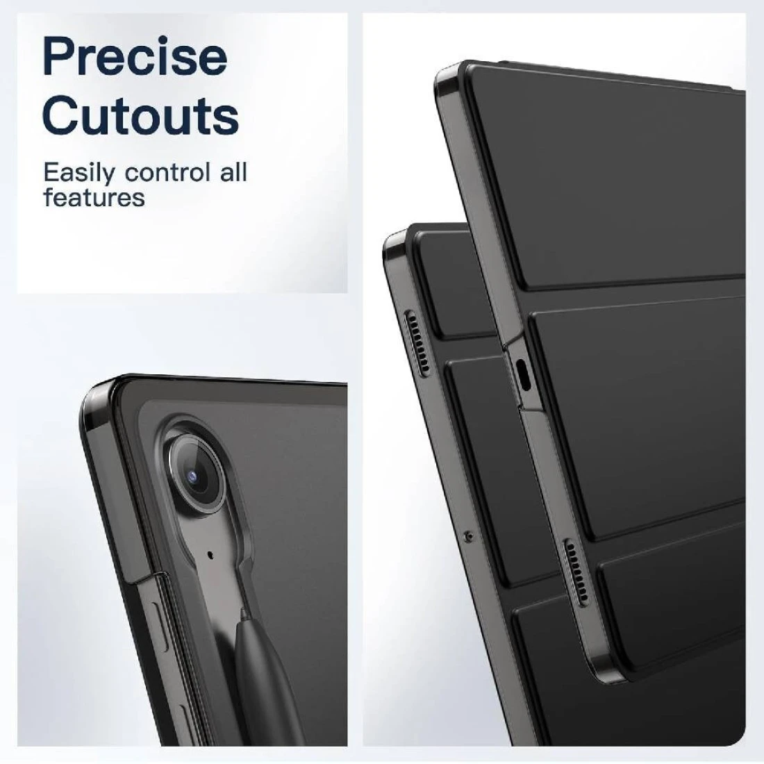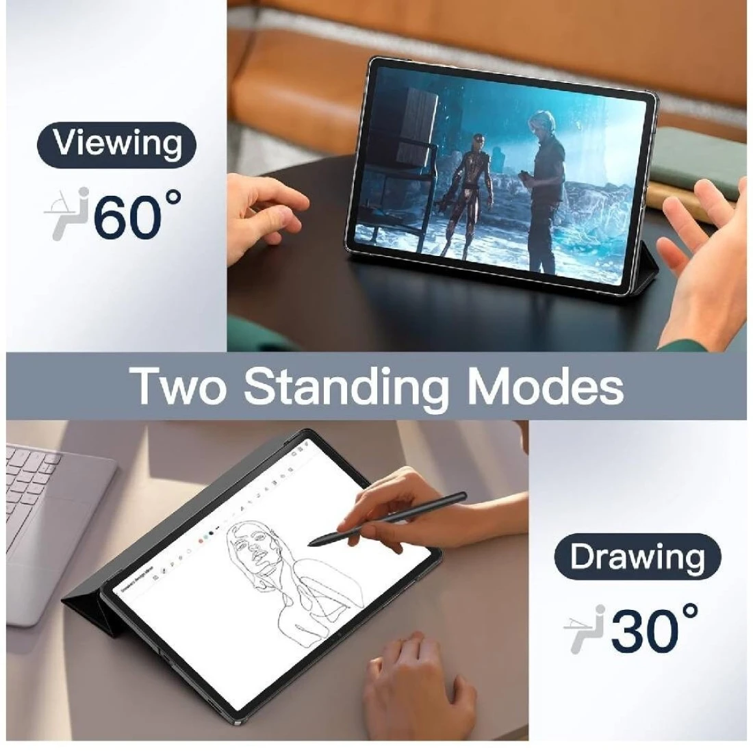 Case For Samsung Galaxy Tab S9 FE 10.9-Inch, Slim Translucent Back Tri-Fold Stand Protective Tablet Cover, Support S Pen Charging, Auto Wake/Sleep (Black)