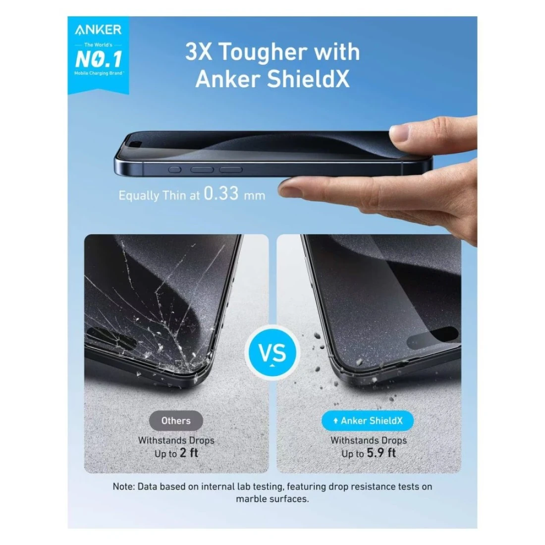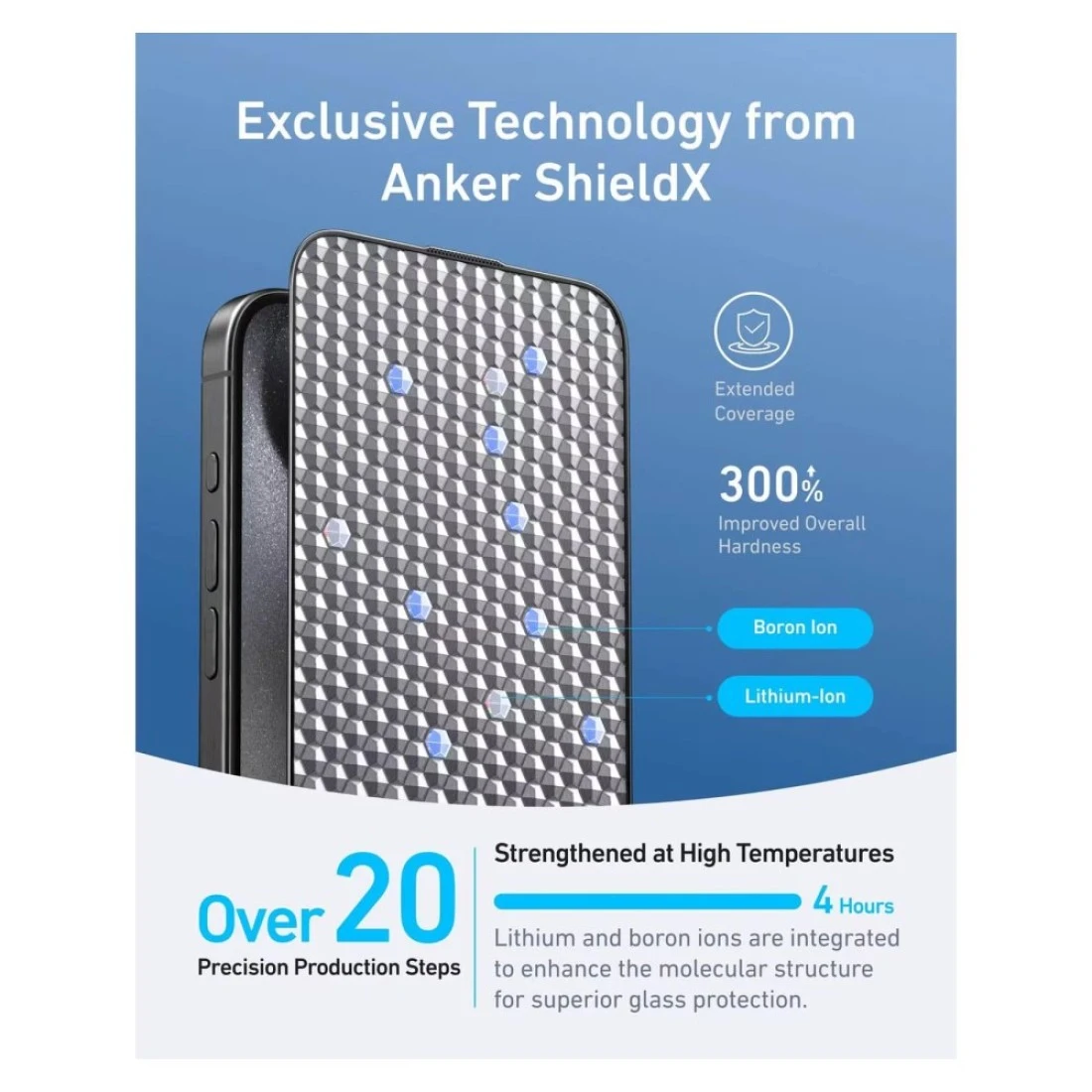 Anker ShieldX Easy Fit Screen Protector for Apple iPhone 16 Pro Max Clear