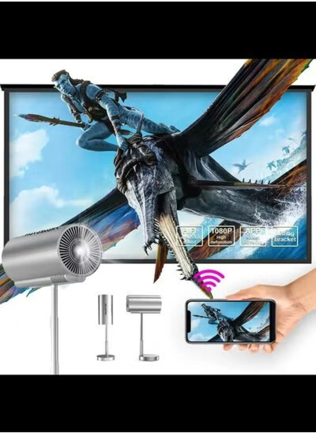• High-Quality Projection: Although compact, the projector delivers 720P HD resolution with support for 4K content