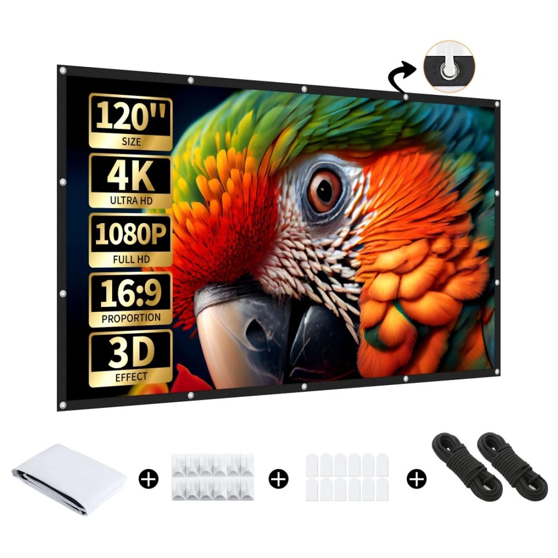 AURZEN 120Inch Portable Projector Screen 169 4K HD WrinkleFree Foldable IndoorOutdoor Movie Screen DoubleSided Projection Ideal for Home Theater and Backyard Use