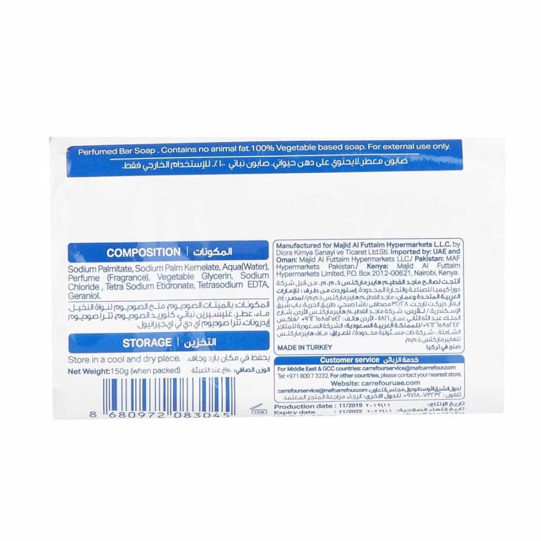 - 100 percent vegetable-based soap for all types of skin