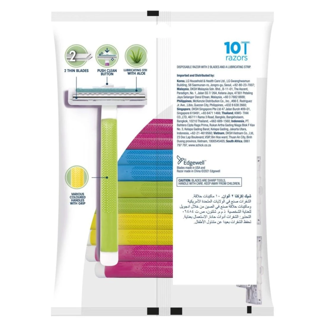 - These disposable razors for women feature a conditioning strip formulated with Aloe and Vitamin E to provide glide and help reduce irritation and a comfortable rubber grip handle for stability