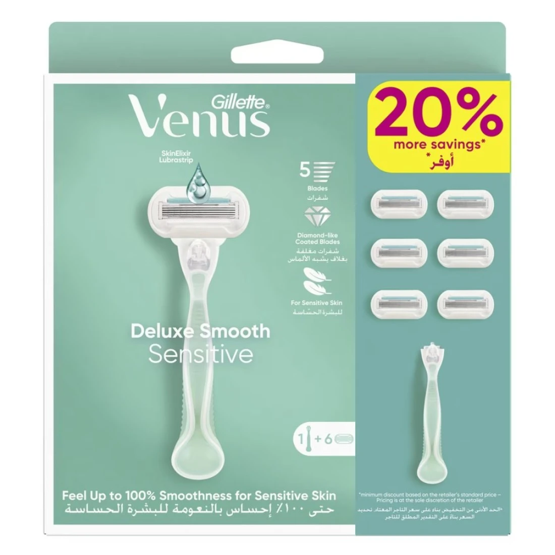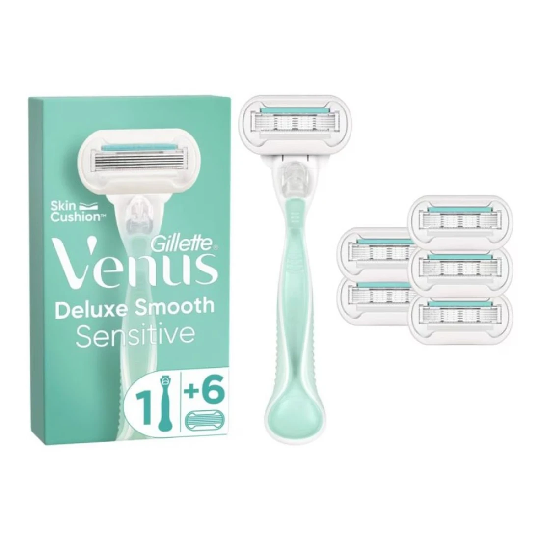 Gillette Venus Deluxe Smooth Sensitive Razor Handle with Cartridges Pack of 6