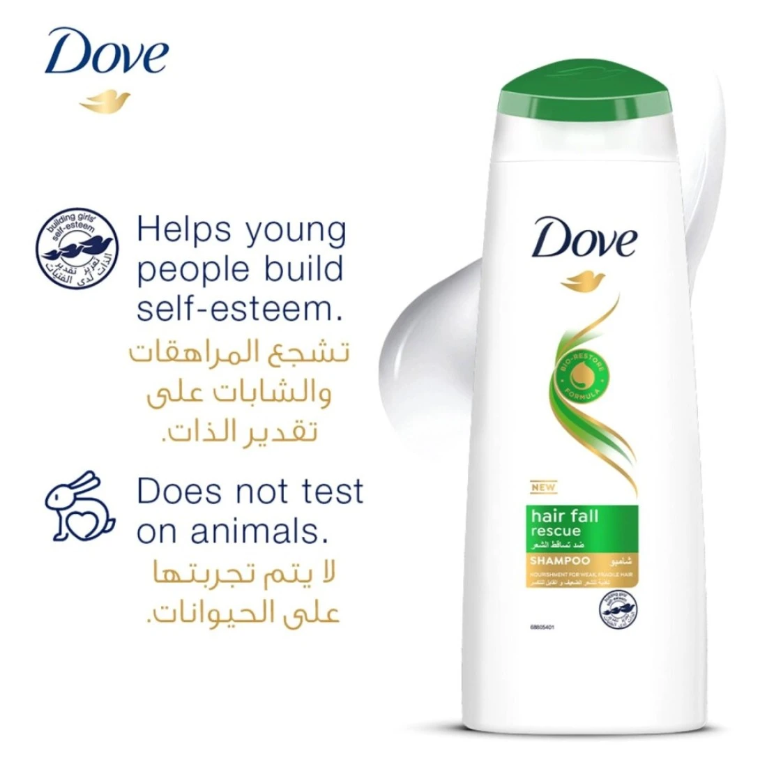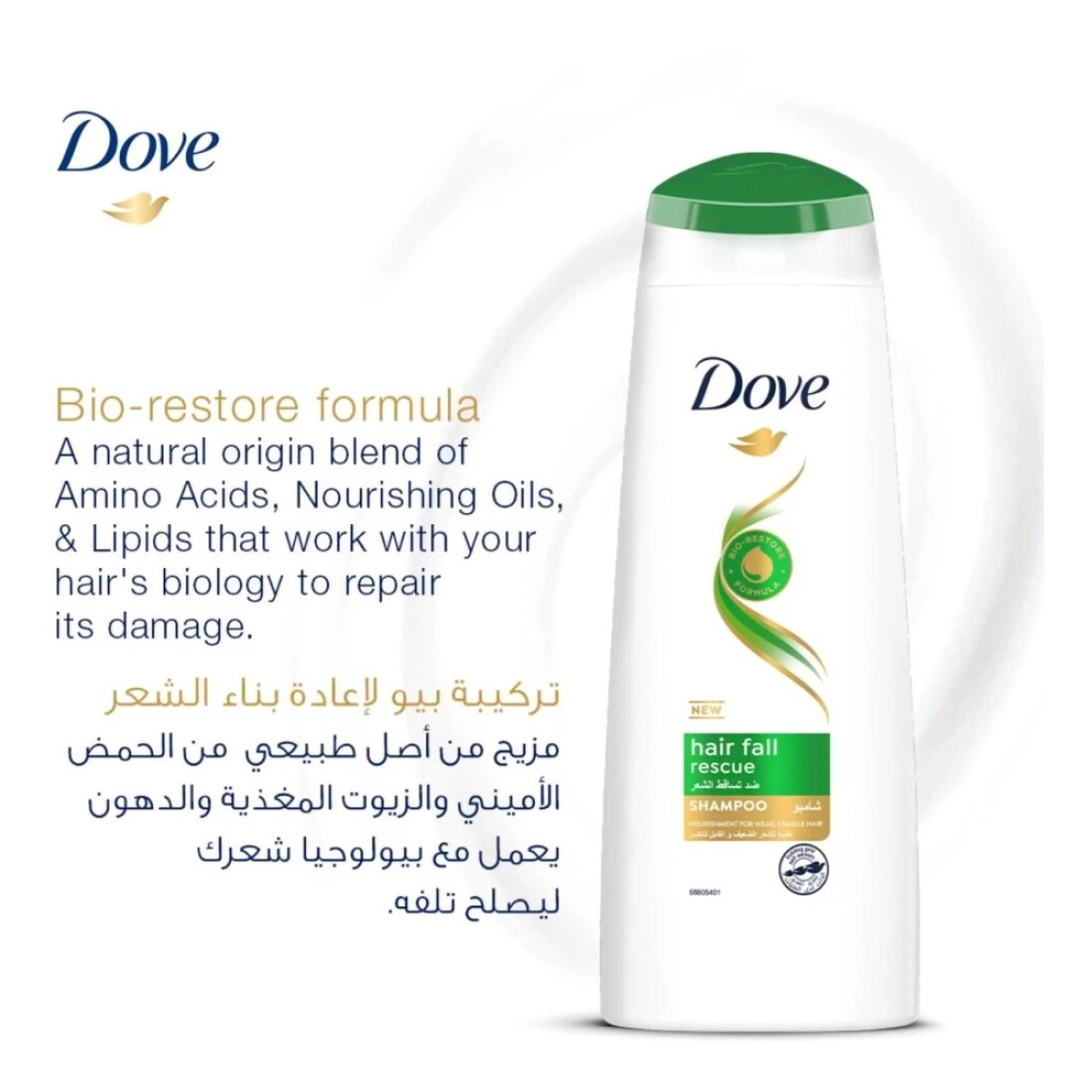 - Be free of hair fall worries with Dove Hair Fall Rescue Shampoo