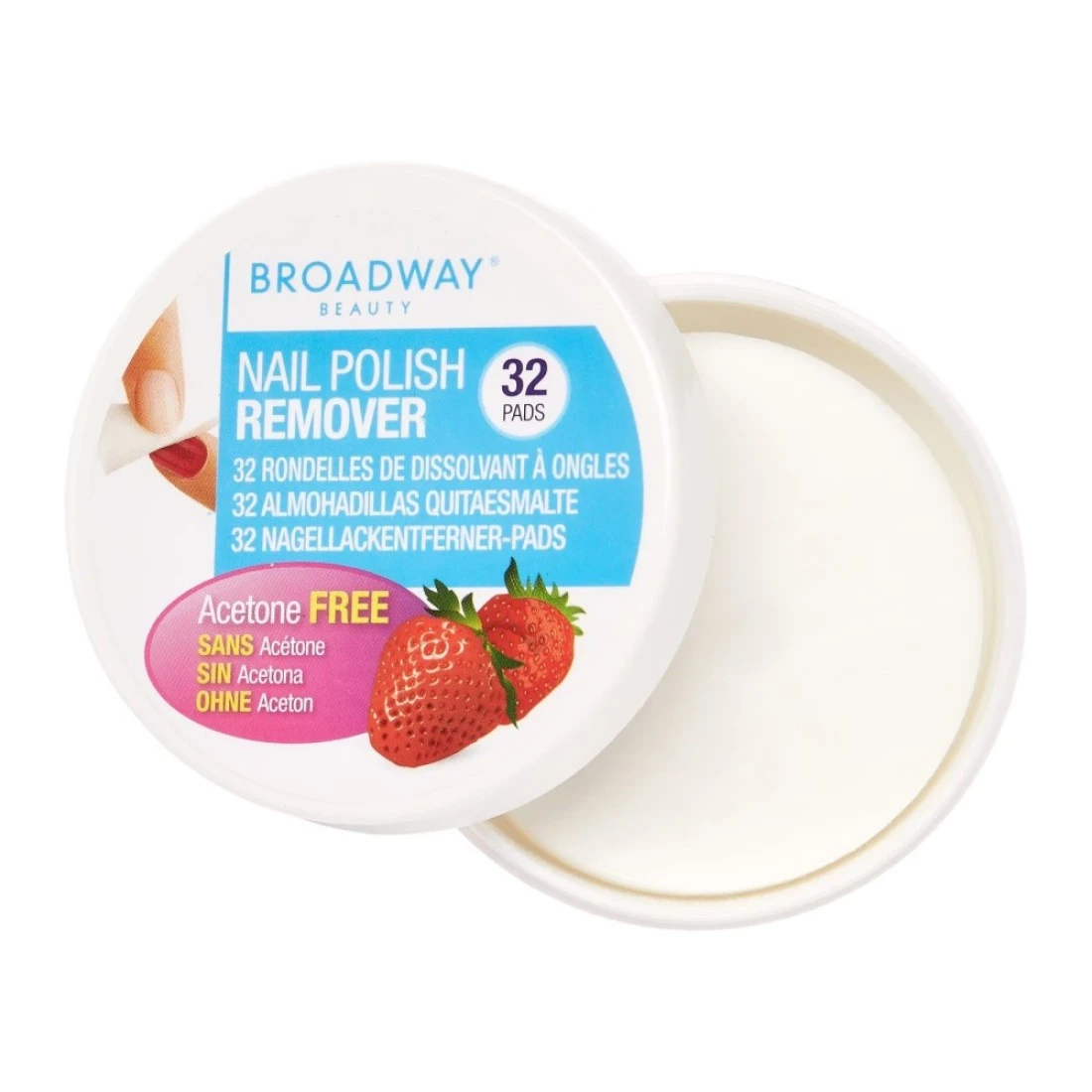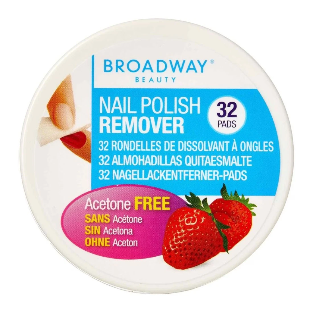 - The Broadway Lemon Nail Polish Remover Pad is acetone free and lightly scented with strawberry fragrance