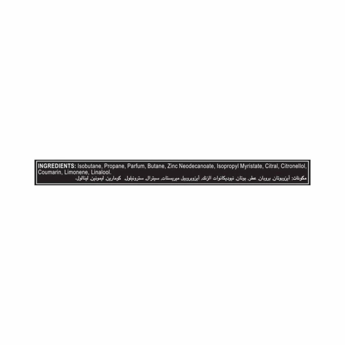 ingredients : Alcohol Denat., Butane, Isobutane, Propane, Perfume, Ethylhexylglycerin, Citral, Citronellol, Coumarin, Limonene, Linalool