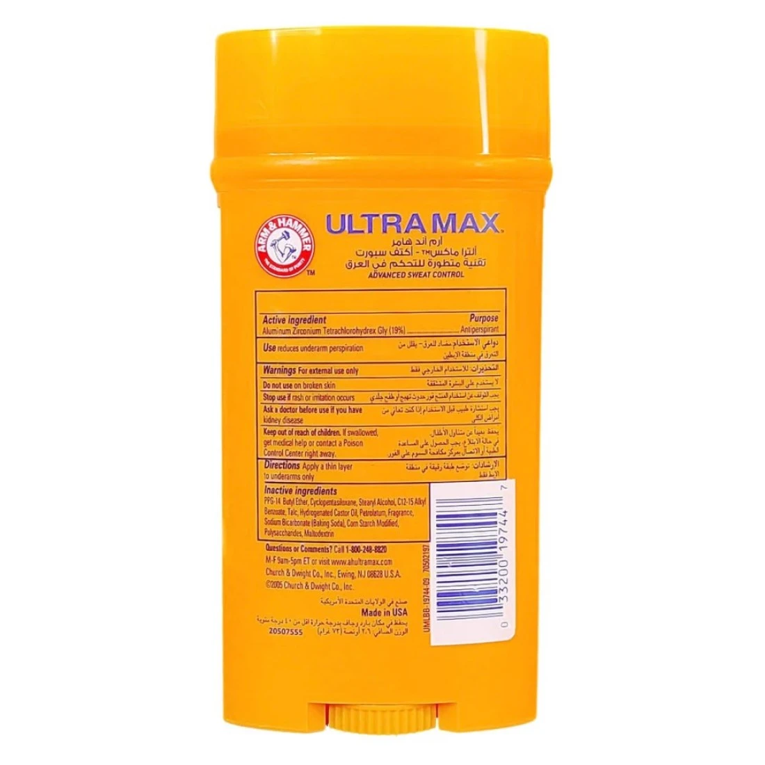 Arm & Hammer Ultra Max Active Sport Solid Antiperspirant Deodorant Stick Clear 73g