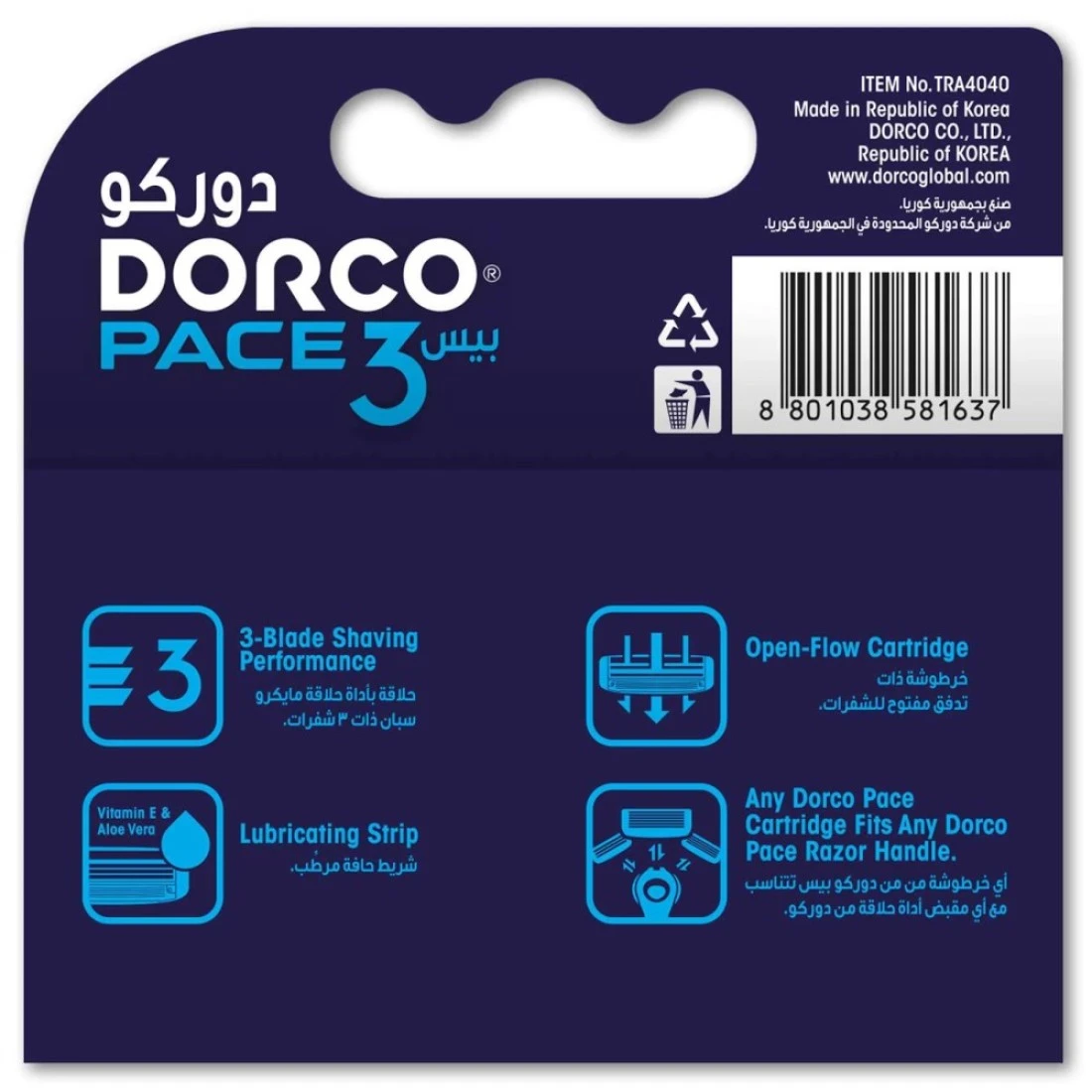Dorco Pace3 Razor Cartridge 4 PCS