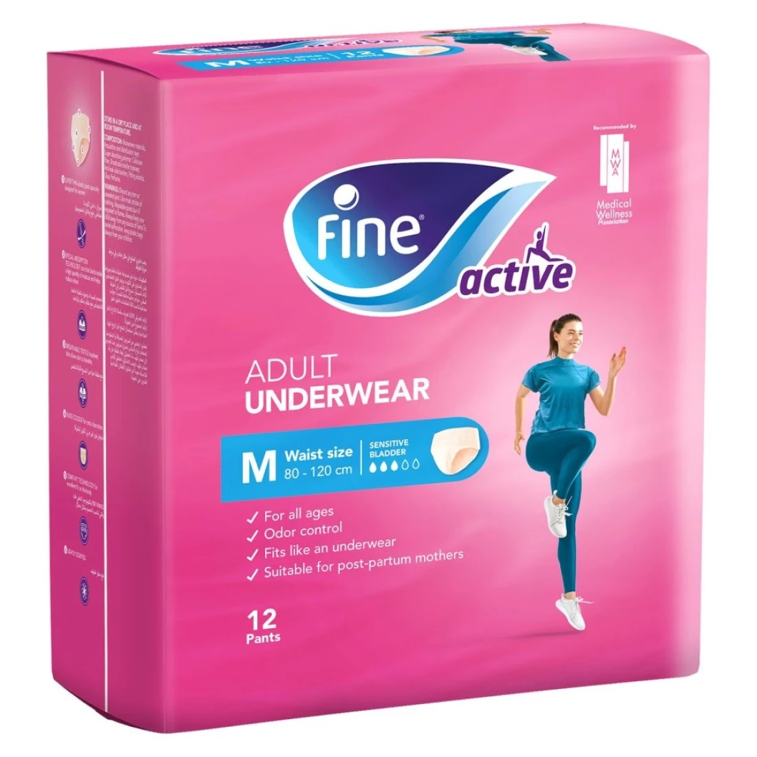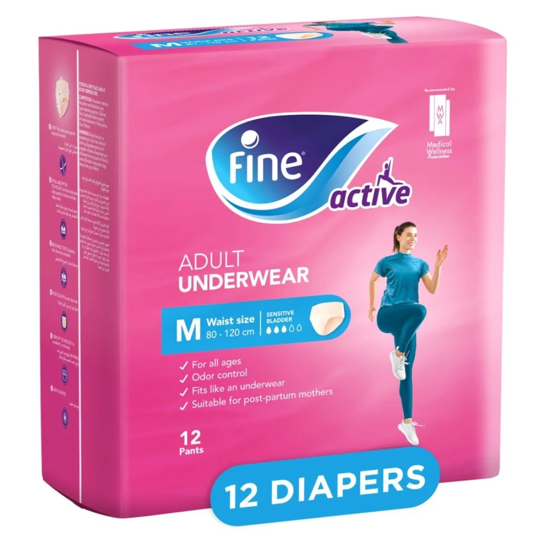 Fine Active Female Postpartum Diapers are specially designed for new mothers who want to stay active and comfortable after giving birth. These medium-sized pull-ups provide maximum protection and absorbency allowing you to move freely and confidently throughout the day. The pack contains 12 diapers ensuring that you have enough to last for a while. Say goodbye to discomfort and hello to convenience with these postpartum diapers.