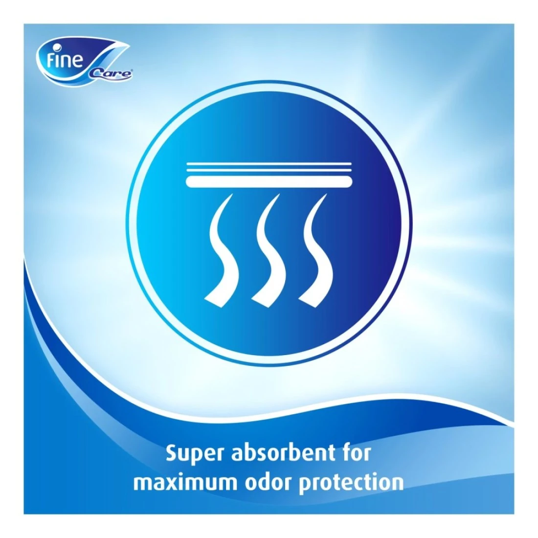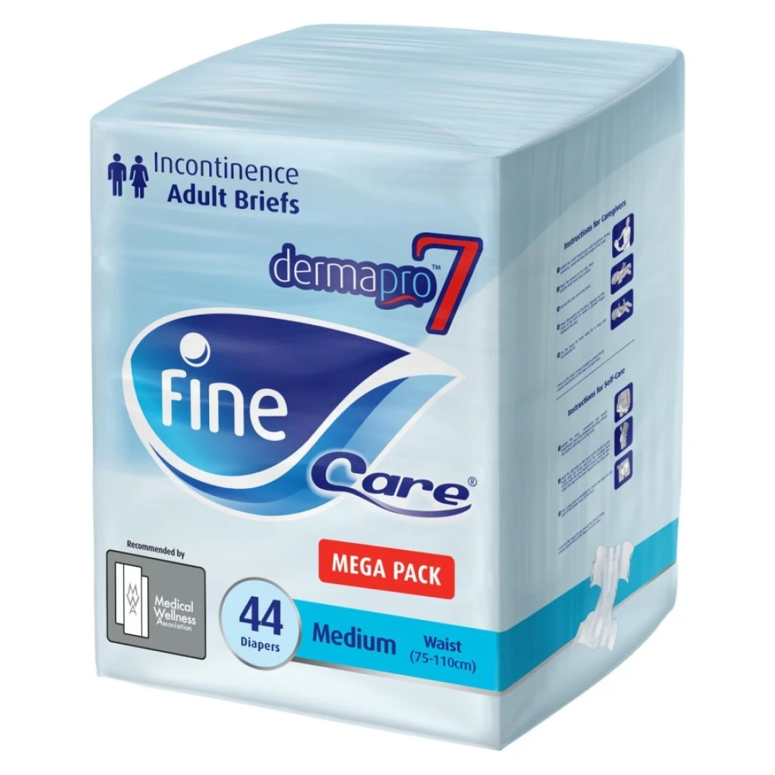 Fine Care Adult Diapers Offers Optimal Absorption And Comfort Throughout The Day And During The Night. Fine Care Adult Briefs, With The Patented Dermapro7 Technology, Offer Optimal Absorption And Comfort Throughout The Day And Night, As They Were Specially Designed To Fit The Body Contour. It Is Designed With A Thin Double Layered Inner Fabric That Provides Ultimate Absorbency To Ensure Maximum Protection And Prevent Leakage, In Addition To The Odor Control Ingredients That Provide Comfort And Confidence During Prolonged Use. Fine Care Adult Briefs Were Engineered With A Textile Back Sheet That Offers Ultimate Comfort And Is Noiseless During Movement. Fine Care Adult Briefs Is The Only Product That Helps Protect Against The 7 Signs Of Diaper Skin Irritation. Give Them The Care They Deserve With Fine Care Adult Diapers!.