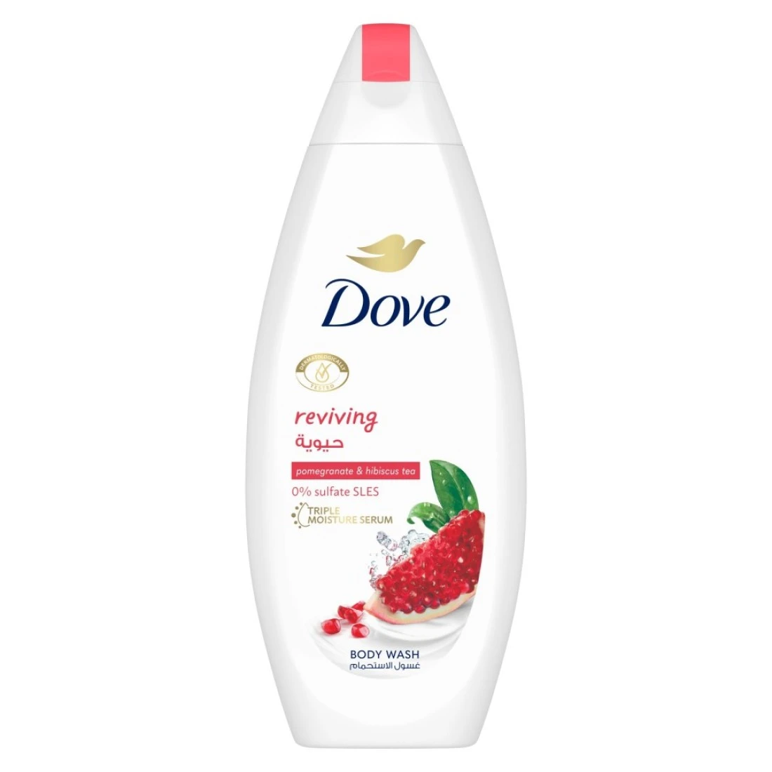 Looking for a skin cleanser that helps energize your senses softens your skin and leaves you feeling fresh? The #1 dermatologist recommended body wash Dove Reviving Body Wash revitalizes your skin and senses with pomegranate and hibiscus tea extracts while moisturizing your skin. This body wash is sulfate and paraben-free with a mild pH-balanced formula making it a great body wash for dry skin, unlike typical bath soap or shower gel. This body wash uses Dove Moisture Renew Blend a combination of skin-natural nourishers and plant-based moisturisers. The lipids and glycerine in our formula absorb deeply into the top layers of skin where they get right to work! This proprietary blend of moisturizing ingredients is proven to work with your skin nourishing so it can maintain and create new moisture. For best results squeeze the reviving pomegranate and hibiscus tea body wash into your hand or onto a shower pouf and work it into a rich lather. Massage it over your skin taking time to allow the cooling pomegranate and hibiscus tea to awaken your senses. Rinse off revealing revived and refreshed skin. Made with 100% gentle cleansers Dove Reviving Body Wash is gentle to the skin's microbiome its living protective layer. It creates a rich lather that moisturizes and replenishes skin while also leaving it to cleanse revive and refresh. With naturally derived cleansers and skin-natural nutrients, we care about what goes into our body wash. Dove sulfate-free body wash is the #1 dermatologist recommended and microbiome gentle. Dove care goes further than moisturizing body wash with PETA Cruelty-Free certification and 100% recycled plastic bottles.