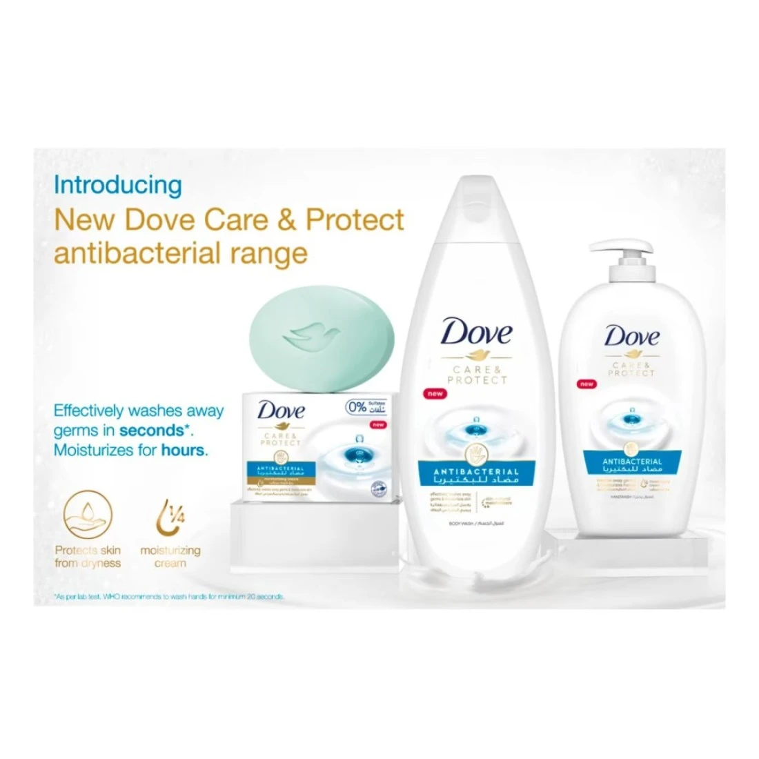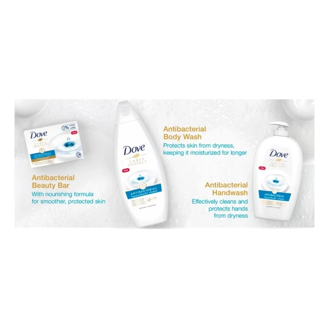 - So, if you're looking for a moisturising antibacterial hand wash that washes away germs and nourishes your skin, it's time to add dove care and protect antibacterial hand wash to your routine