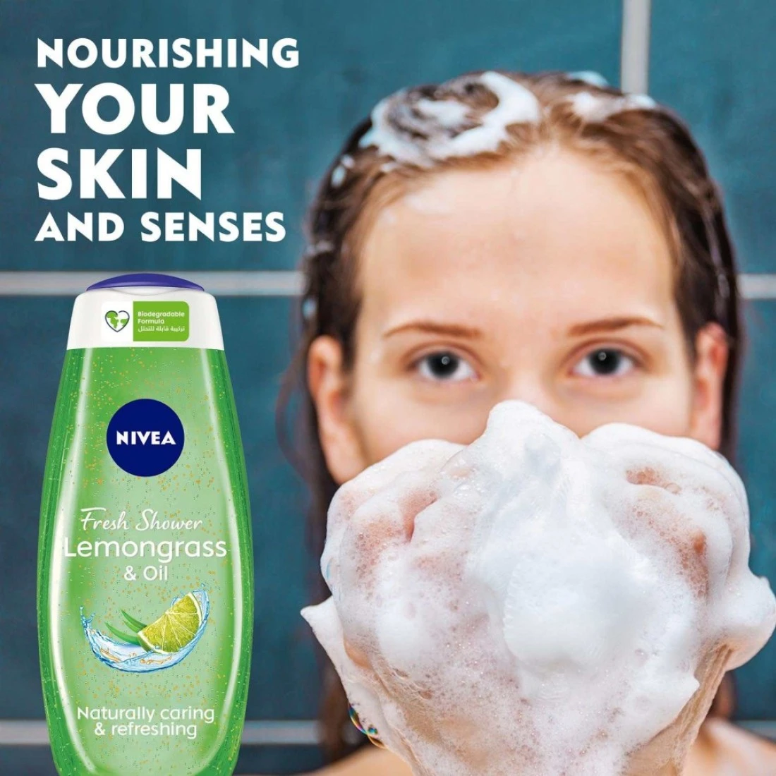 - ENRICHED WITH revitalizing lemongrass and care oil pearls, NIVEA Lemongrass and Oil Shower Gel envelopes your body with a silky, soft foam and stimulates your senses with its refreshing fragrance