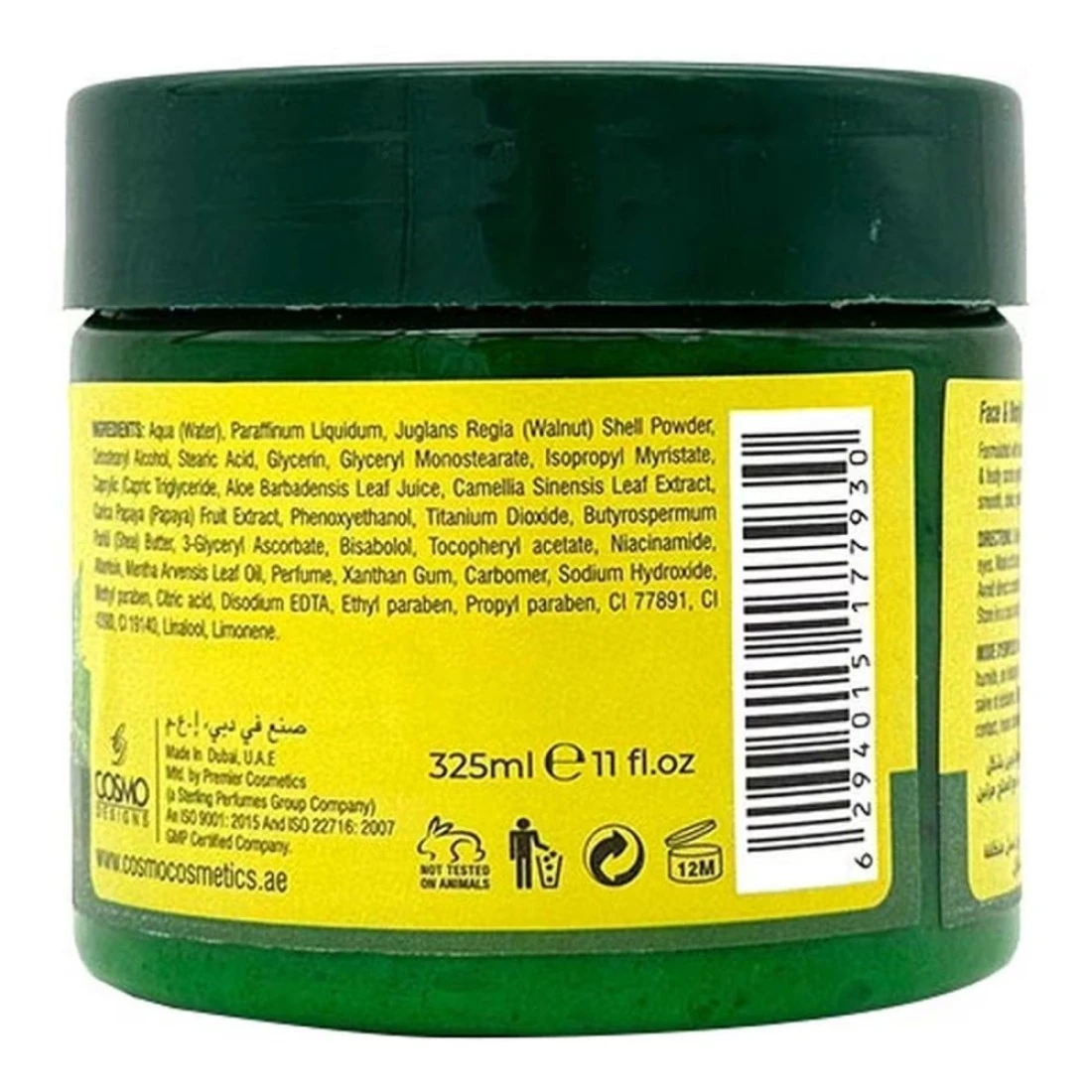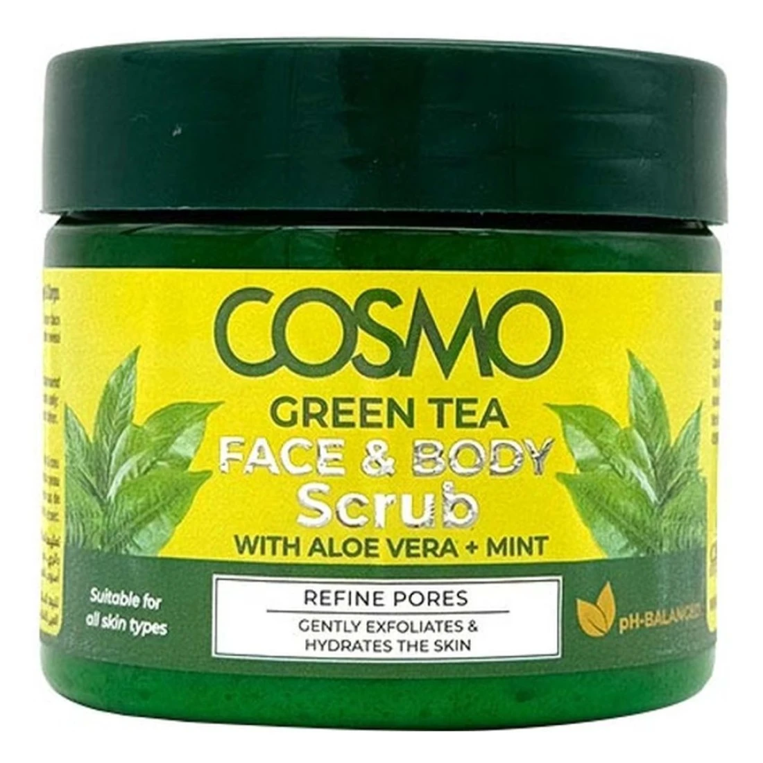 Cosmo Green Tea Face and Body Scrub is a luxurious exfoliating scrub that is infused with green tea extract to help cleanse and rejuvenate the skin. This gentle scrub helps to remove dead skin cells, unclog pores, and reveal smoother, softer skin. The refreshing green tea scent leaves you feeling invigorated and refreshed. Perfect for use on both the face and body, this scrub is a must-have for anyone looking to achieve a radiant and healthy complexion.