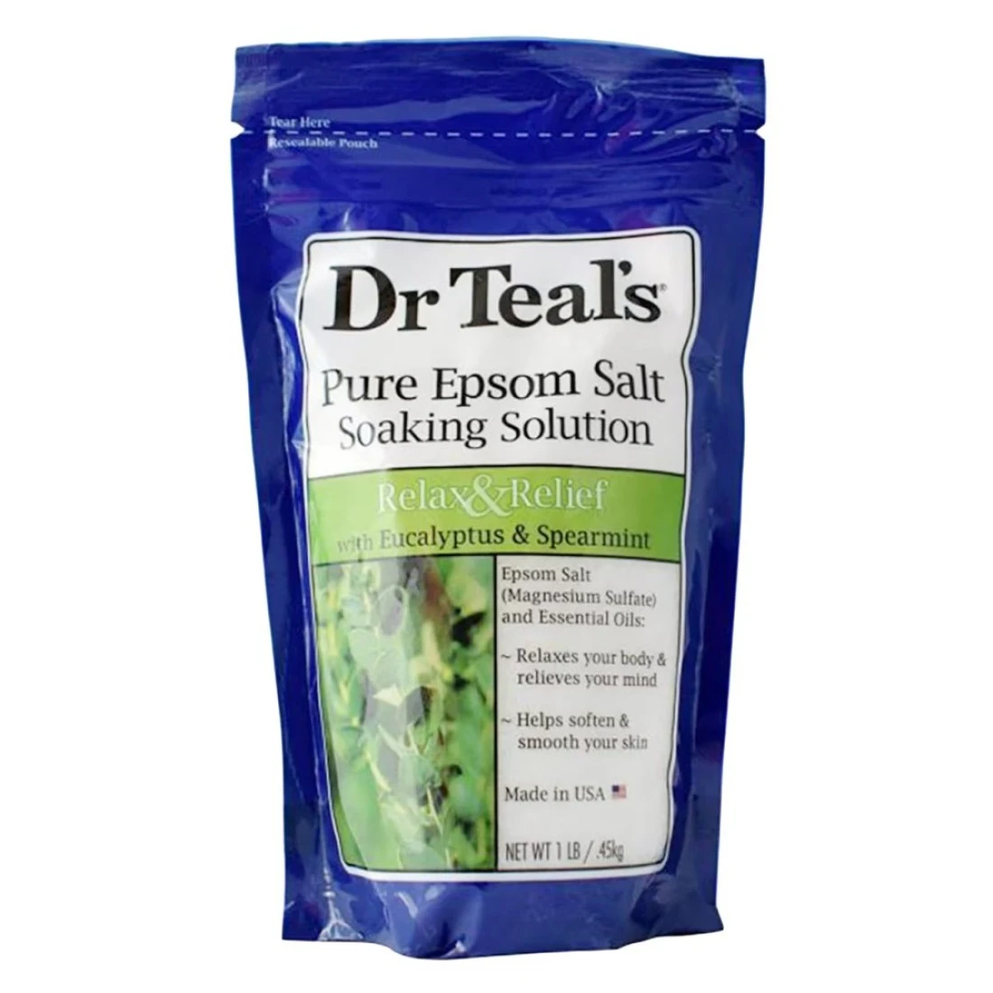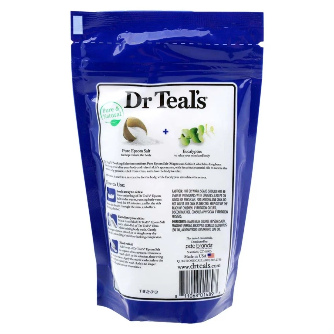 Dr Teal's Pure Epsom Salt Soaking Solution With Eucalyptus And Mint is a refreshing and invigorating bath salt that helps to soothe and relax tired muscles. Made with pure Epsom salt eucalyptus oil and spearmint oil this soaking solution provides a rejuvenating experience that can help to relieve stress and promote a sense of well-being. Simply add a cup of this salt to warm bath water and soak for 20 minutes to enjoy the therapeutic benefits. The eucalyptus and mint fragrance will leave you feeling refreshed and revitalized.
