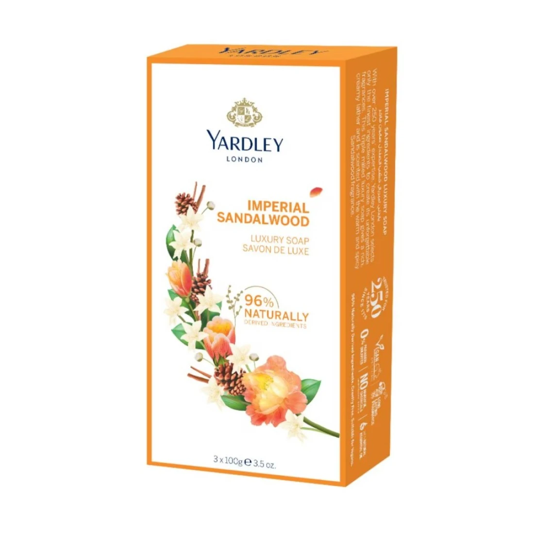 Yardley Sandalwood Luxury Soap is a must-have for anyone who loves the rich and soothing scent of sandalwood. This soap is made with natural ingredients and is gentle on the skin, leaving it feeling soft and moisturized. The yellow packaging adds a touch of Luxury to your bathroom decor. With a pack of 3, you can enjoy the long-lasting fragrance of sandalwood for an extended period. Each soap is 100g, making it the perfect size for everyday use. The soap lathers well and rinses off easily, leaving your skin feeling clean and refreshed. Yardley Sandalwood Luxury Soap is suitable for all skin types and is free from harsh chemicals. It is also cruelty-free, so you can feel good about using it. Treat yourself to the indulgent scent of sandalwood with this pack of 3 Luxury soaps.