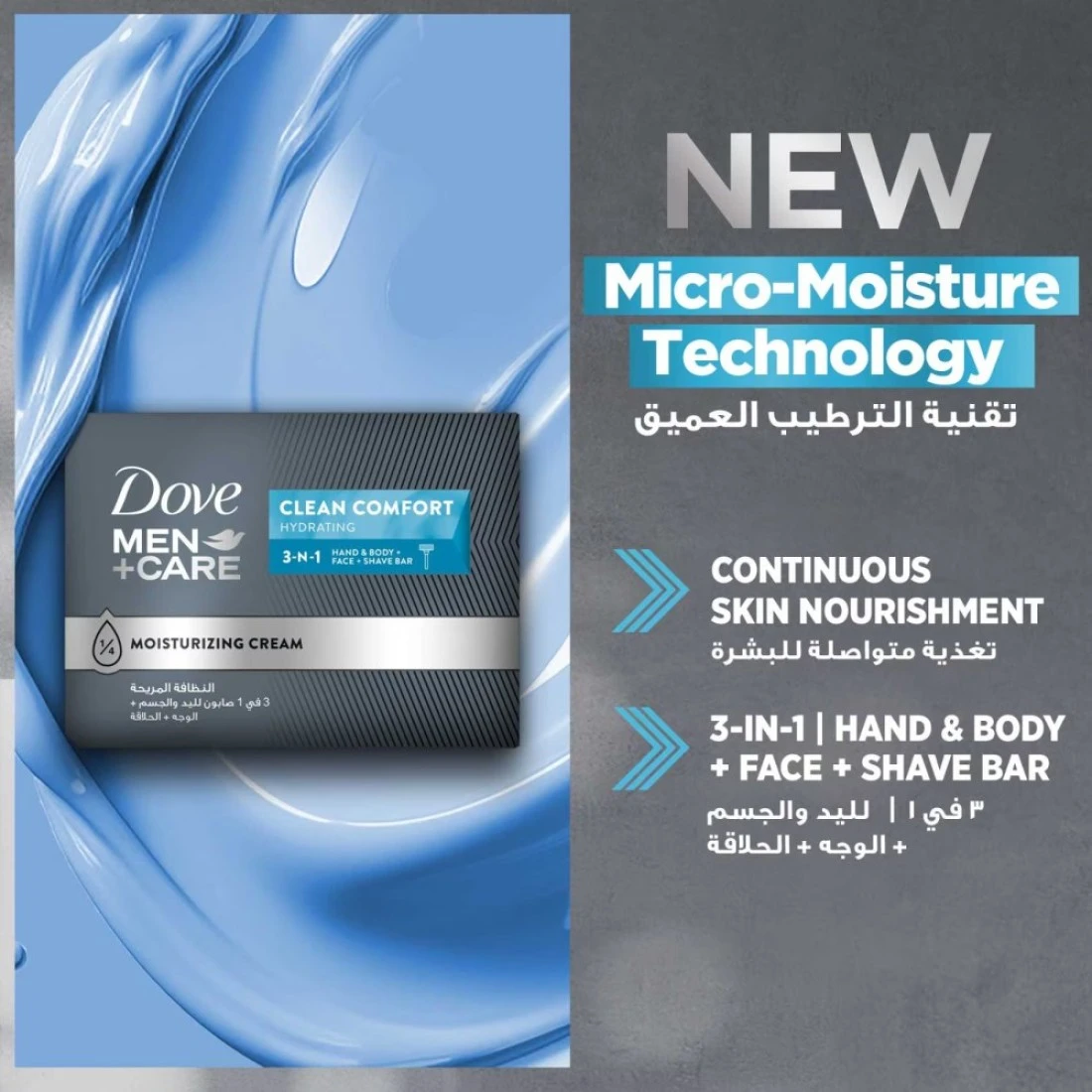 - FOR A CLEAN AND REFRESHING FEEL: Engineered for men, Dove Men+Care Clean Comfort Cleansing Bar cleans effectively to wash away bacteria and leave a refreshing, invigorating feeling after every wash.