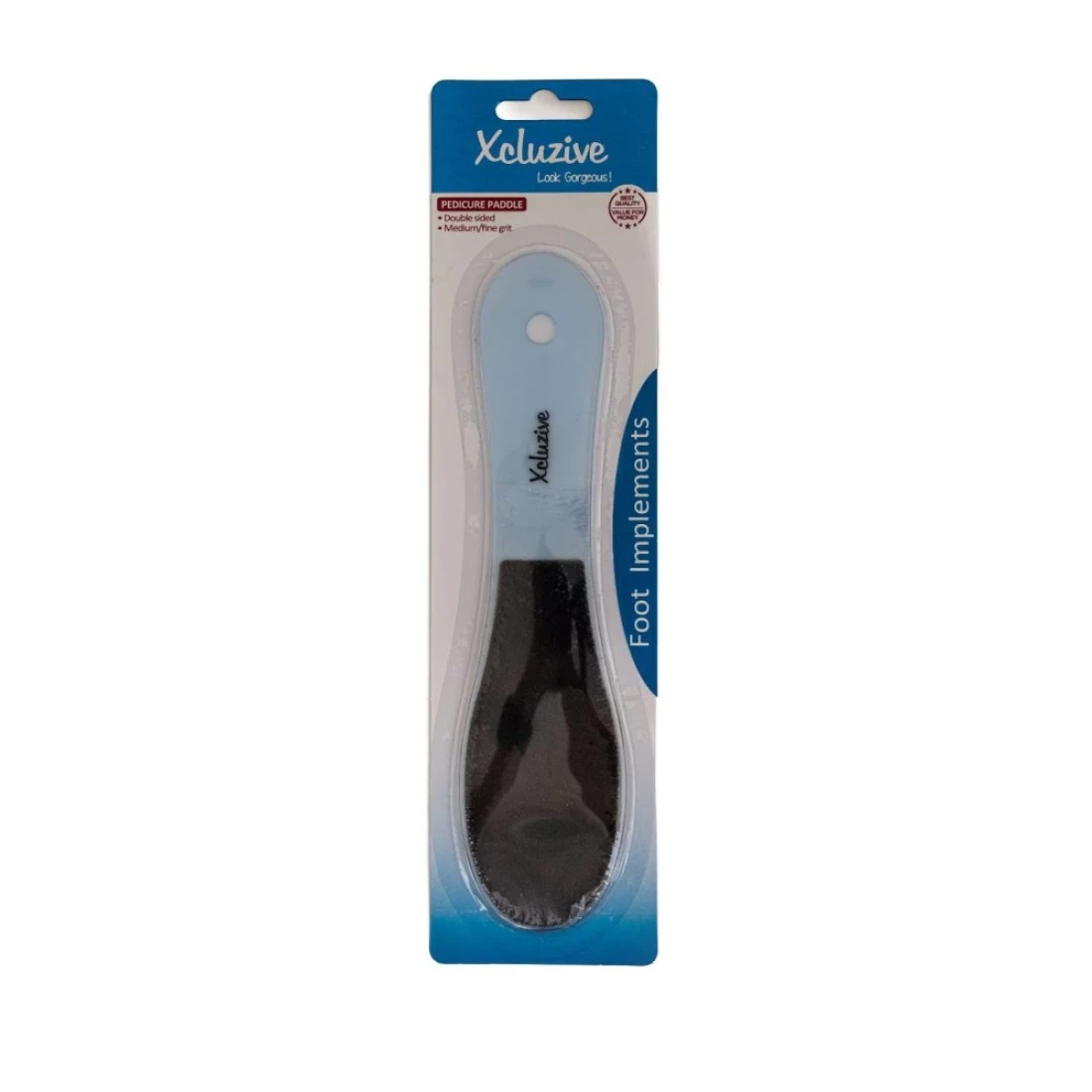 Xcluzive Pedicure Paddle Black is a must-have tool for achieving smooth and beautiful feet. This paddle features a double-sided design with a coarse side for removing calluses and a fine side for smoothing and exfoliating the skin. It also has a built-in file for shaping and buffing nails. The ergonomic handle provides a comfortable grip making it easy to use. Say goodbye to rough and dry feet with the Xcluzive Pedicure Paddle Black.
