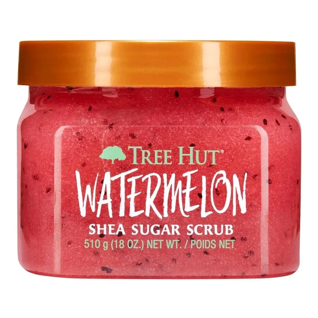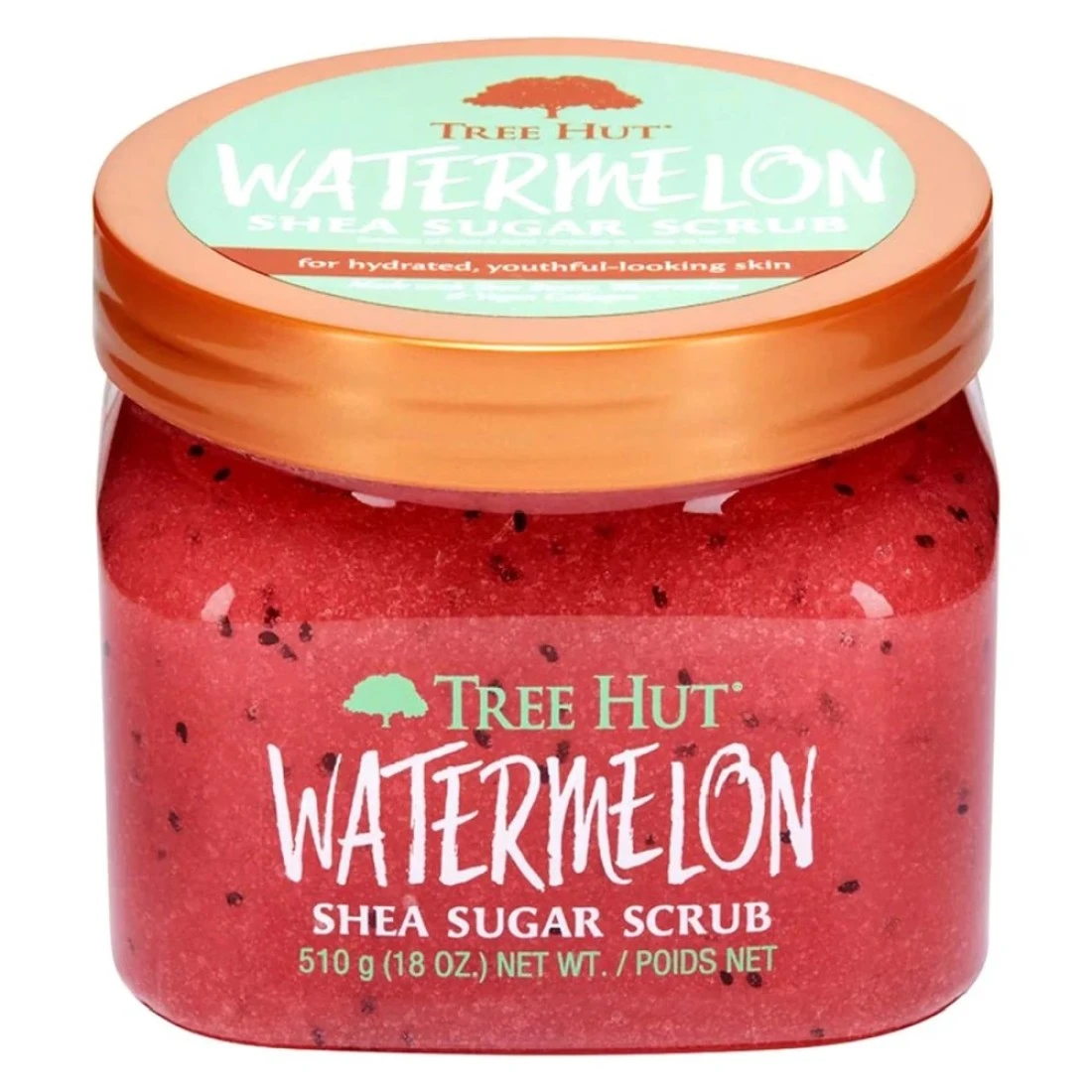 - Tree Hut Watermelon Shea Sugar Scrub is paraben free vegan sulfate-free alcohol-free contains no formaldehyde donors has a no-slip formula and long-lasting fragrance