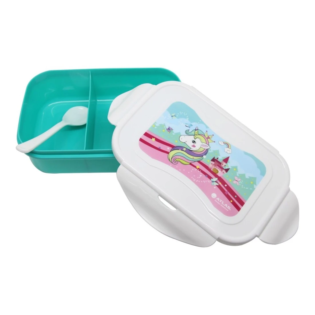 Atlas Unicorn Printed Lunch Box with Spoon Green