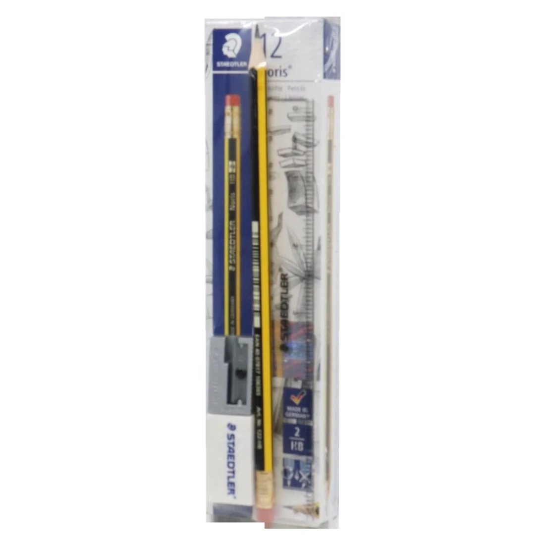 Staedtler Noris 122-HBA HB Pencils Eraser 526-B30 and Sharpener 510-10 with Ruler