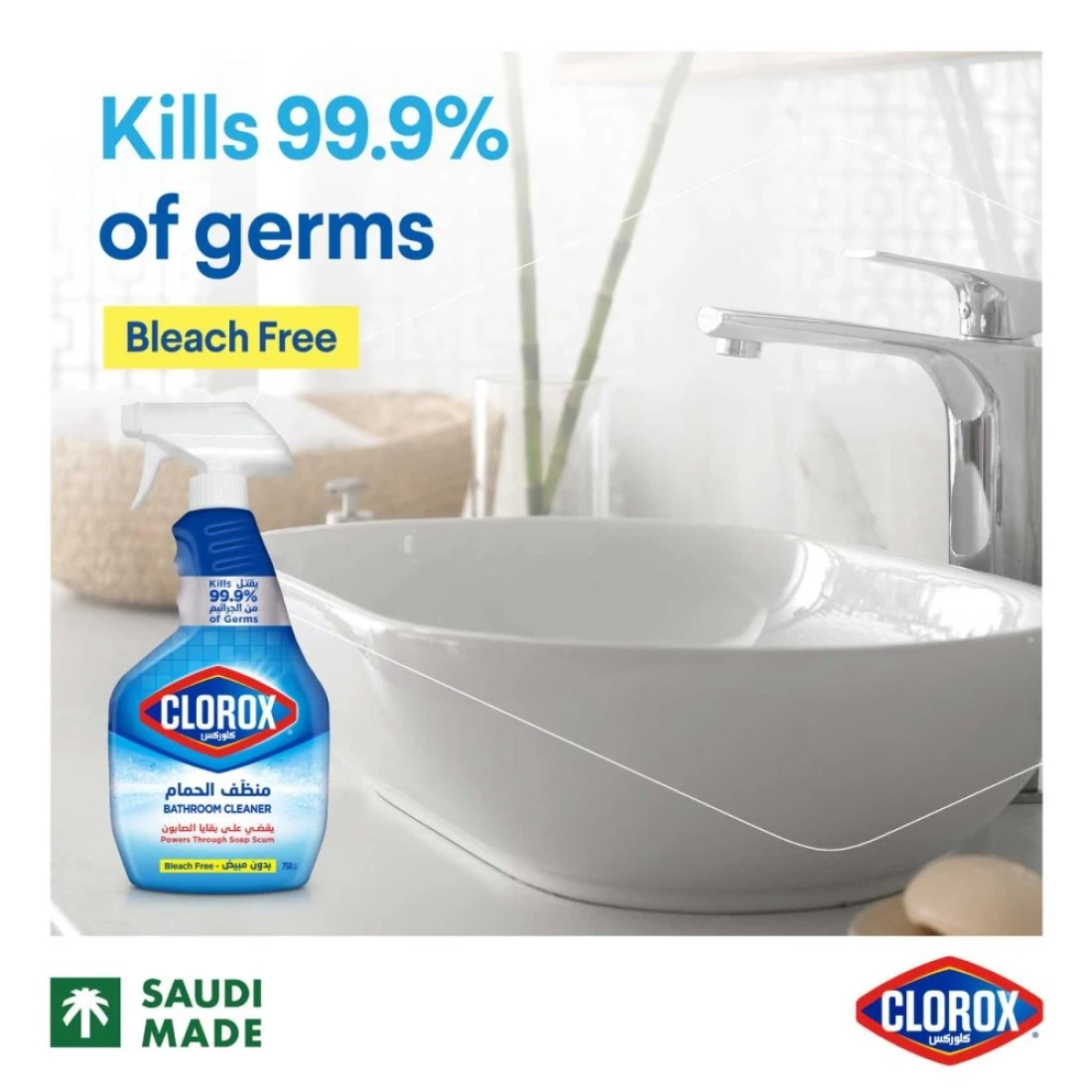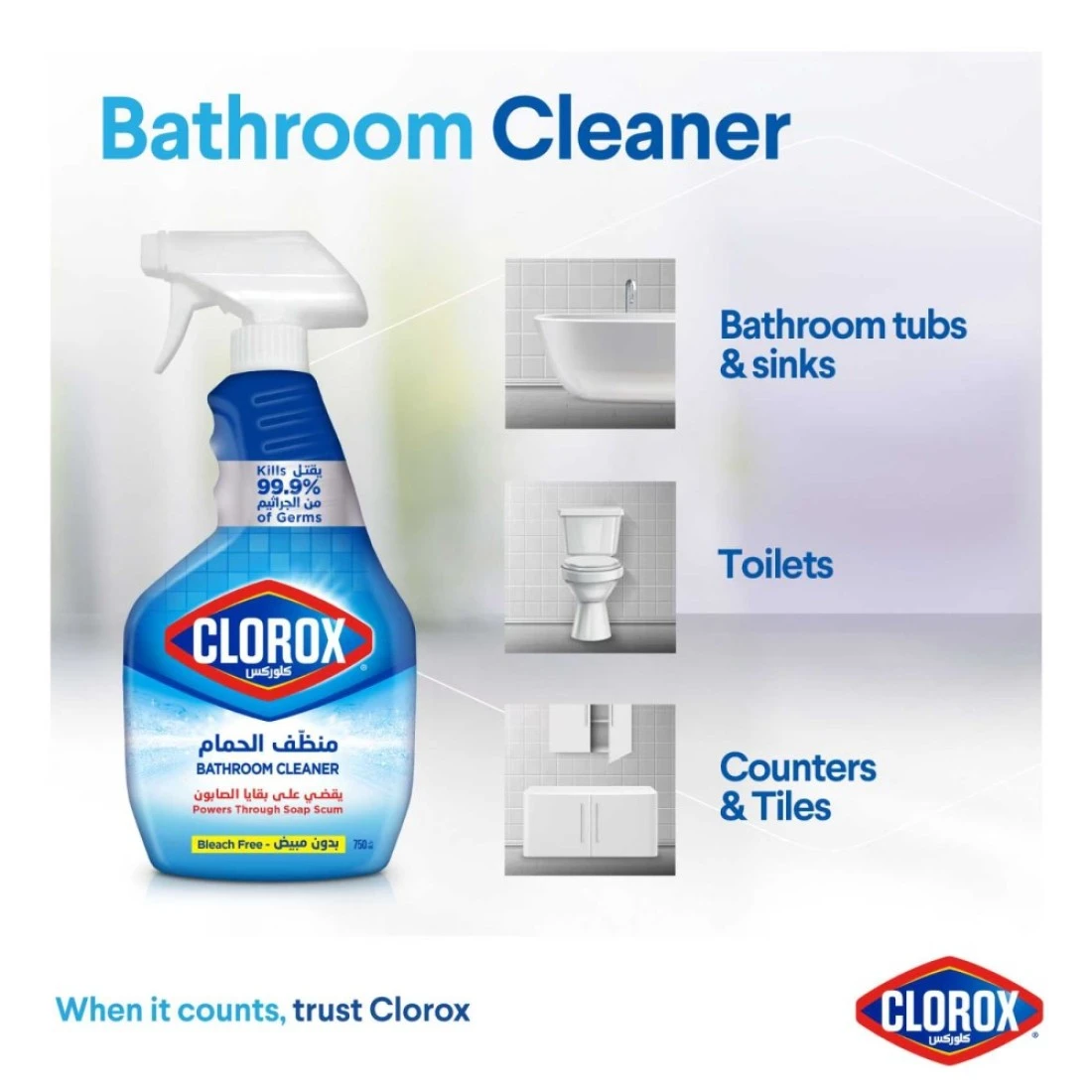 - BLEACH FREE: Our Clorox bathroom spray cleaner is a bleach-free, all-in-one cleaning alternative for bathrooms. Safely clean and disinfect wherever bathroom stains builds up for effective cleaning results.