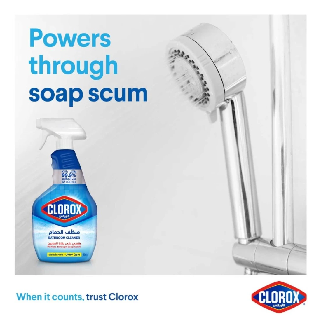 - POWERS THROUGH SOAP SCUM: Use our Clorox Bathroom spray to eliminate any unwanted soap scum or limescale. This bathroom spray cleaner cuts through the toughest bathroom stains and effectively removes them from surfaces.