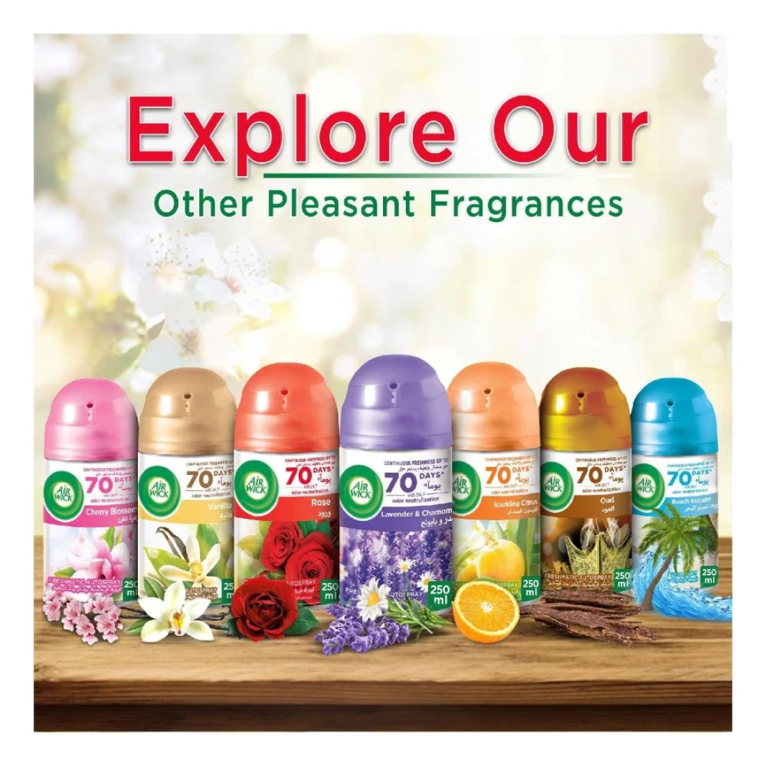 - Also, explore Airwick's products range like - Aerosol Air Freshener, Aqua Mist, Candles, Car Freshener, Crystal Air Decorative Gel, Carpet Freshener Car Hangers, Freshmatic Autospray and Scented Gel in a variety of pleasant fragrances