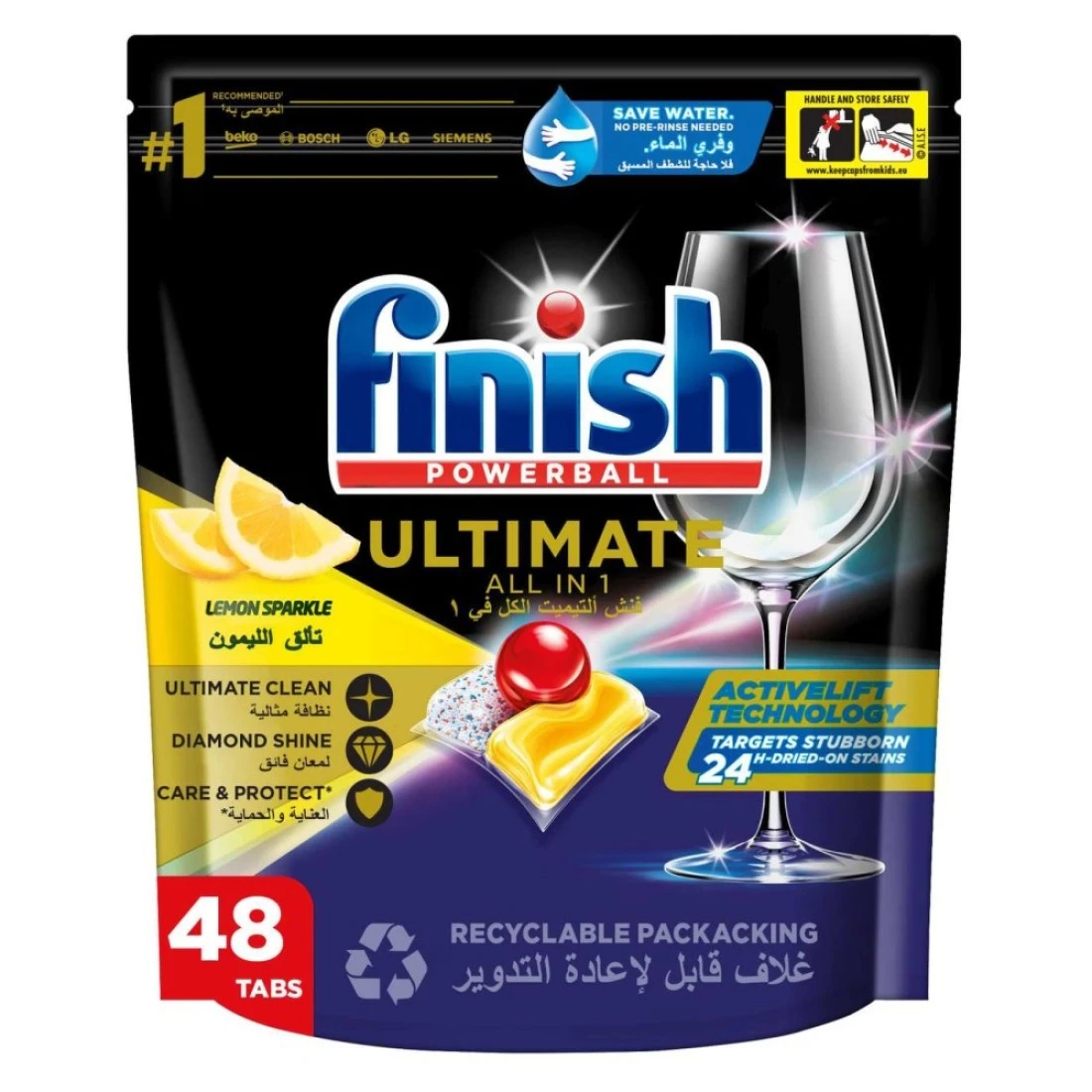 Finish Powerball Ultimate All-In-1 Dishwasher Lemon Sparkle 48 Tablets