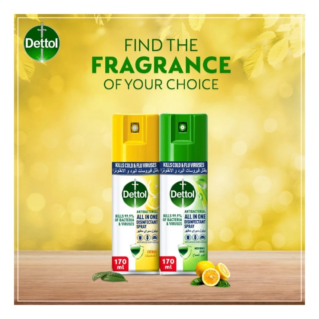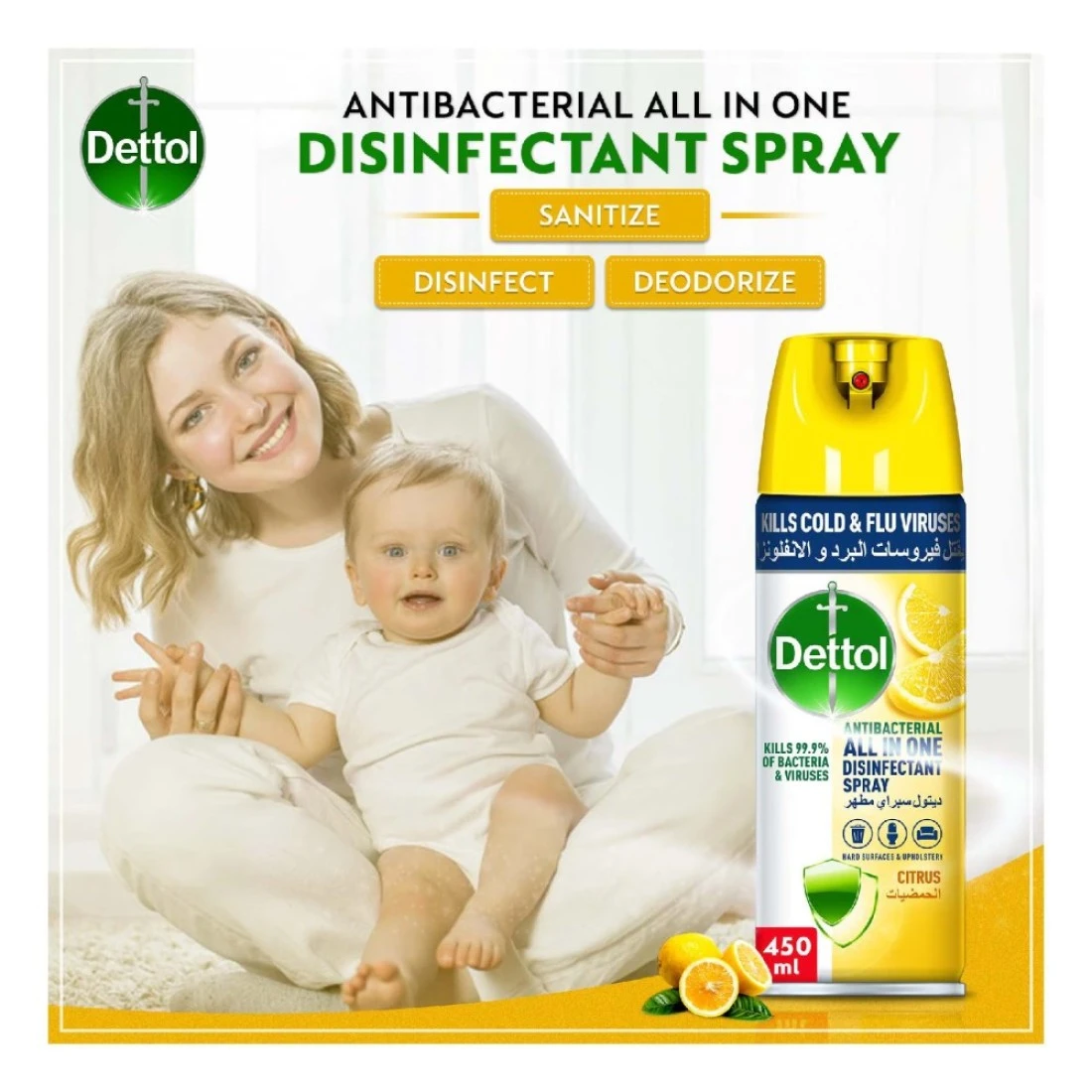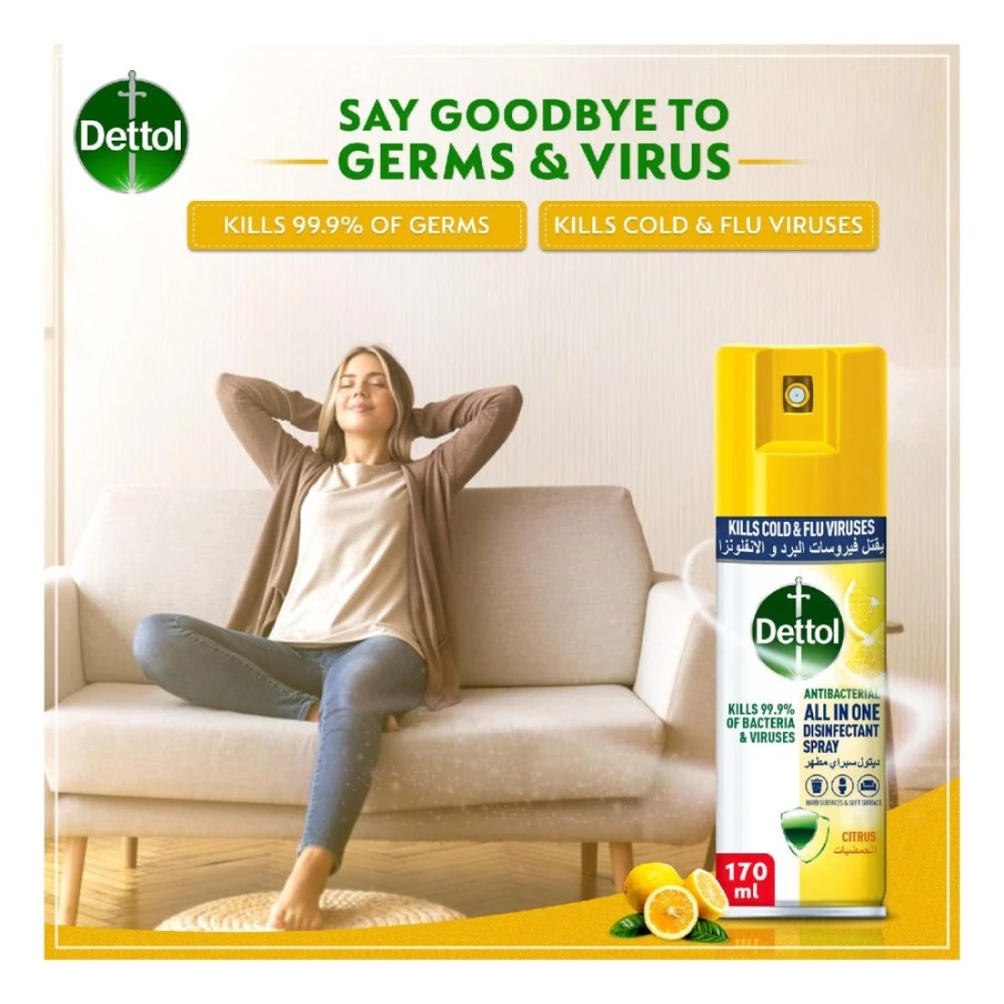 Dettol Citrus Antibacterial All-In-One Disinfectant Spray White 400ml And 170ml